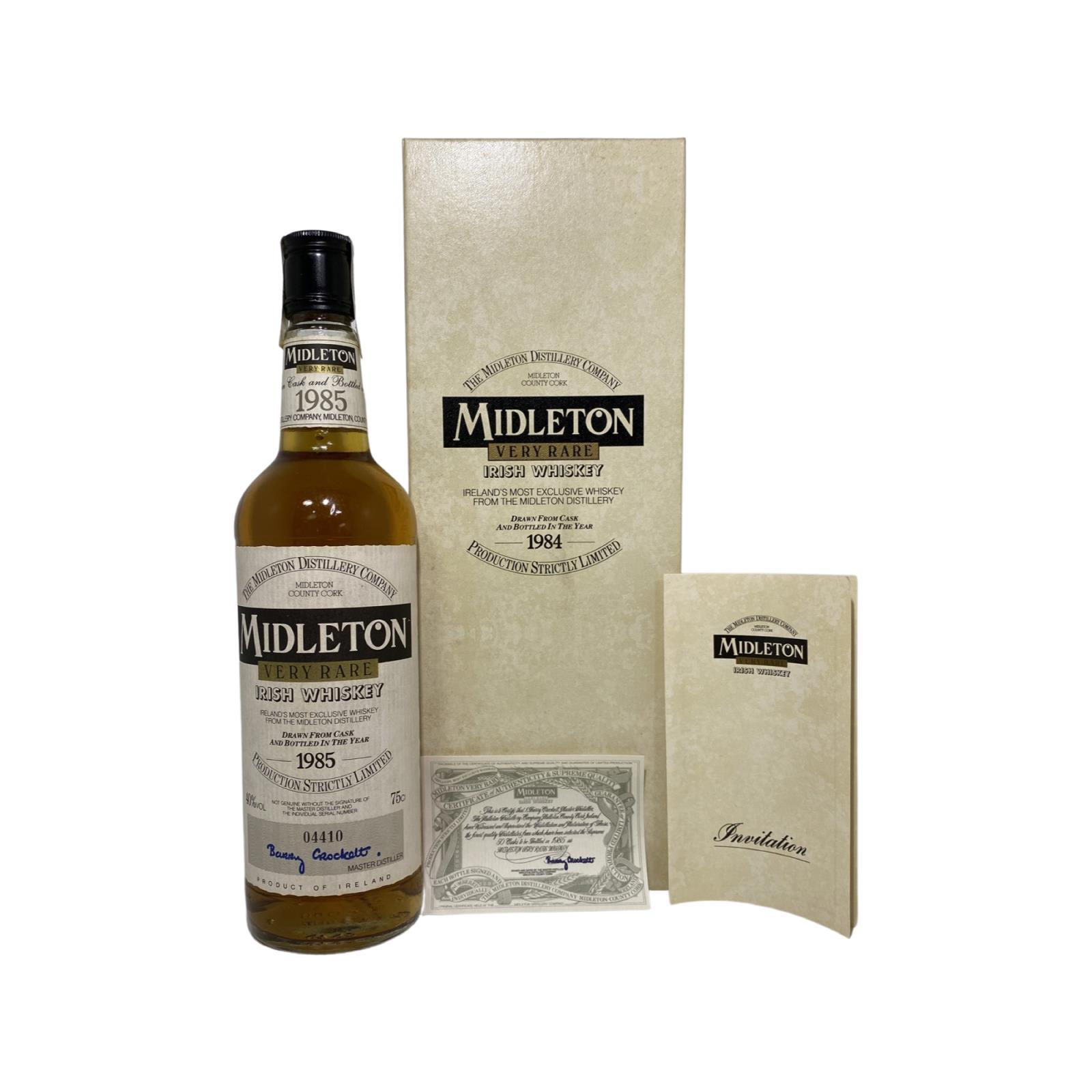 A rare and collectable bottle of Midleton Rare from the 1985 vintage when the master distiller was Barry Crockett. The Midleton Very Rare 1985 is the second edition of the Very Rare Series that began in 1984 whereby a new vintage is released every year.This has the paperwork for the 1985 bottle but the box for 1984