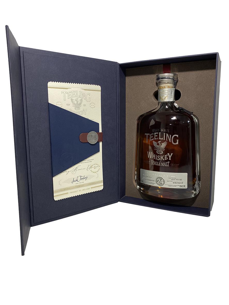 The Teeling 24 Year Old Single Malt Irish Whiskey was first distilled in 1991 and matured in Bourbon casks then allowed marry in Sauternes wine casks producing a wholly unique taste experience. The unique dual maturation imparts an extra depth of fruit flavours that perfectly complement the hint of smoke derived from the inclusion of a small portion of Peated malt as part of the original ingredients used in production. This small batch bottling, limited to just 5,000 70cl bottles, were hand bottled in unique decanter bottles and come with their own certificate of authenticity. Recently awarded the title of World’s Best Irish Single Malt, this is a whiskey to be savoured.