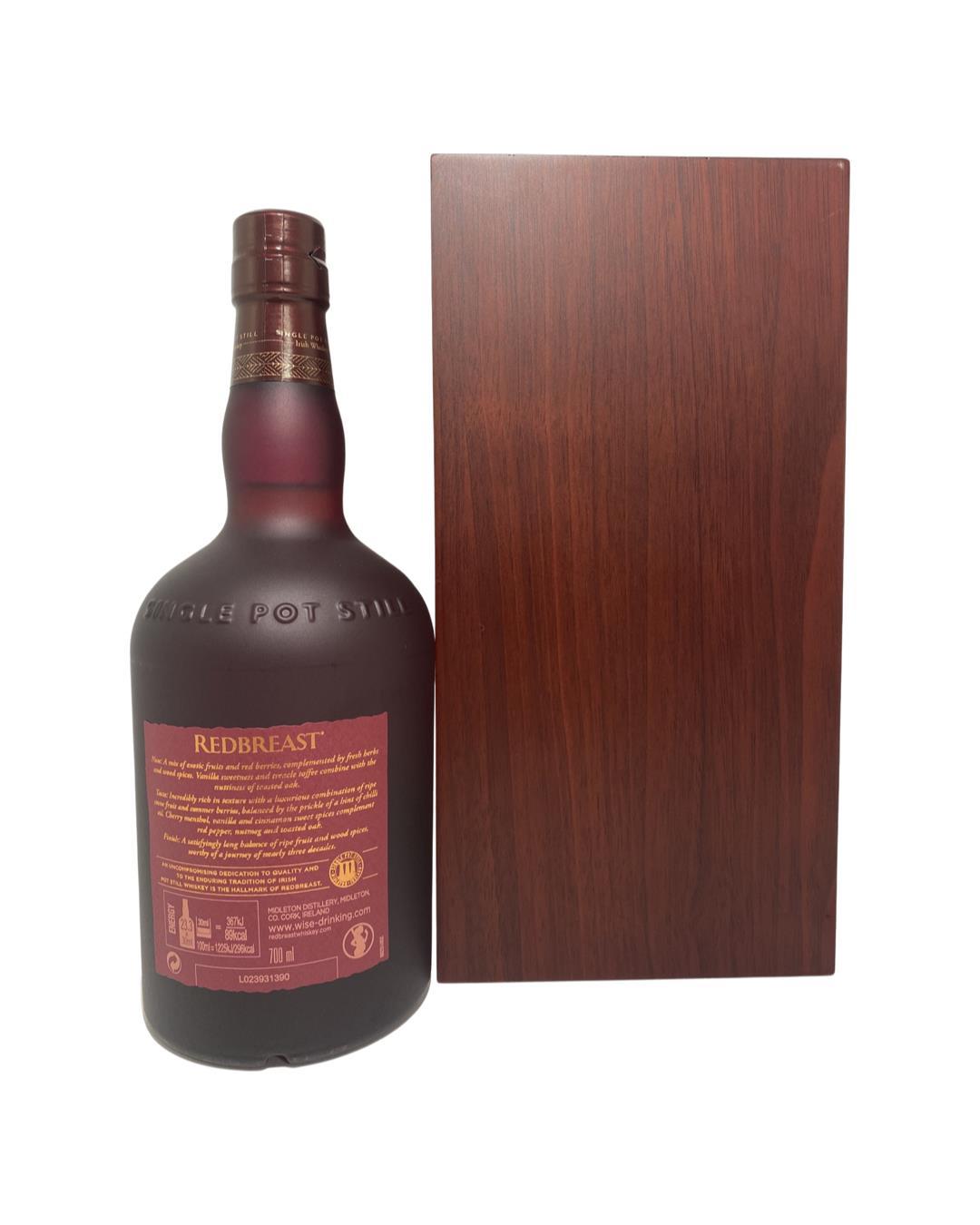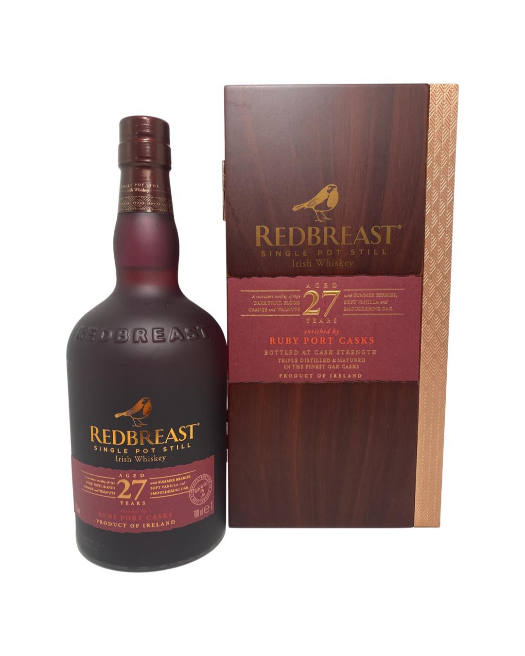 Master winner at the Irish Whiskey Masters in both 2021 and 2022! This release is the oldest permanent member of the Redbreast range and one of their most award-winning! This expression has been matured in both bourbon and sherry casks as well as including ruby port casks for the first time to bring even more complexity and depth. Rich flavours of exotic fruits, wood spices and wonderful sweet treacle notes.