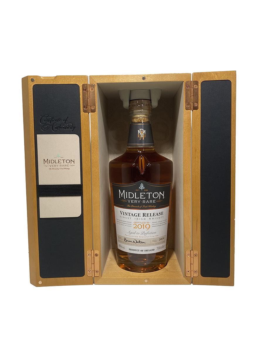 The Midleton Very Rare 2019, is a bottling brought out by the Midleton Distillery in Co. Cork. The ‘Midleton Very Rare’ range was launched in 1984 and a new vintage has been released every year since then. Barry Crockett started off the ‘Midleton Very Rare’ range while he was the Master Distiller of Midleton Distillery, in 2013 Barry Crockett retired from his role of Master Distiller. From 2014 onwards Brian Nation has been creating the ‘Midleton Very Rare’ range, maintaining its role as standard-bearer and pinnacle of Irish Whiskey. The bottle and gift box in great condition also include the cert and distillery invite. Bottle number 26834