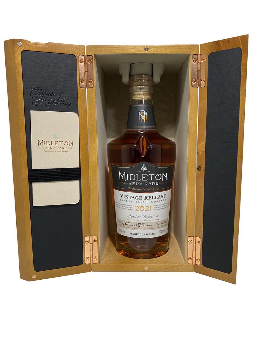 The 2021 edition to Ireland's most premium and beloved whiskey series; Midleton Very Rare. This is the 38th installment and the first release under Kevin O' Gorman appointed Master Distiller of the Midleton Distillery in 2020. Both the bottle and gift box are in very good condition, certificate and distillery invite are also included.Bottle Number 2512