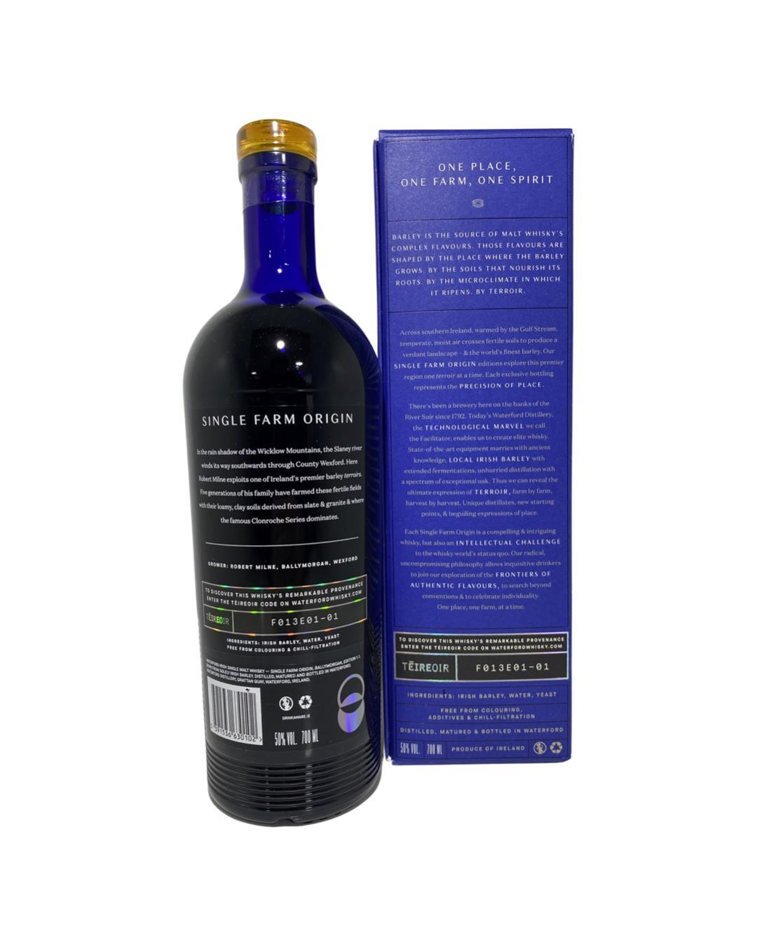 Proudly utilising 100% demonstrably Irish-grown barley from one farm, one terroir, at a time, Waterford Ballymorgan makes use of barley grown by Robert Milne on one of Ireland’s premier malting barley terroirs - the famous Clonroche Series in Co. Wexford, with its loamy, clay soils derived from slate and granite. Limited Stock available.Bottled at 50% ABV without colouring, chill-filtration or any additives.