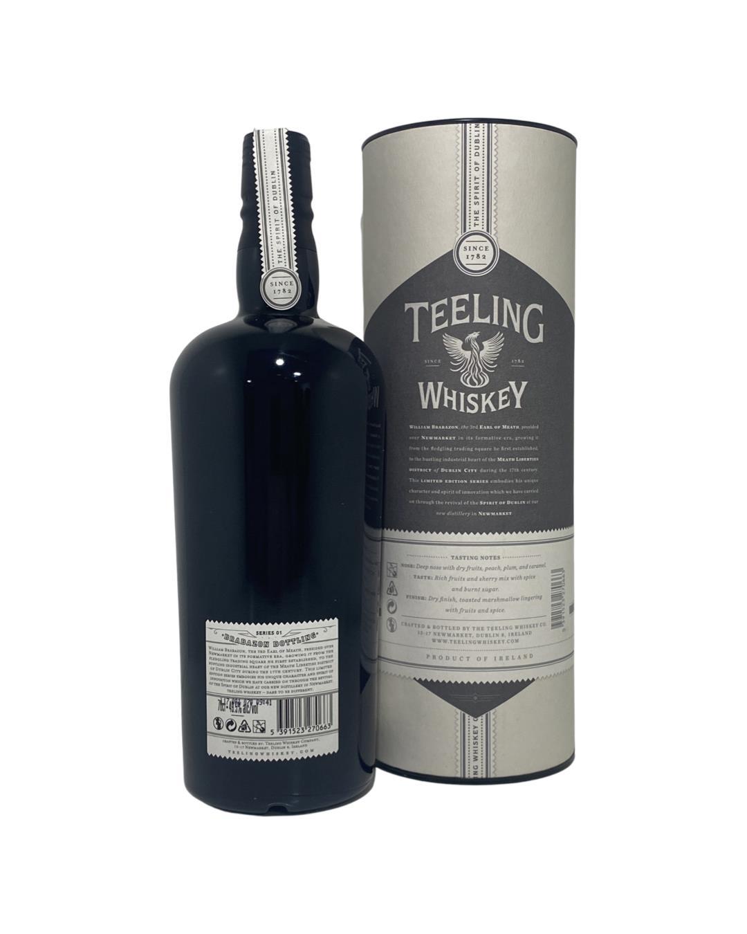 Brabazon Volume 1 focuses on sherry cask maturation and consists of a range of carefully selected sherry cask aged whiskeys producing a full flavoured sherry influenced Irish Single Malt. This bottling consists of a vatting of 6 different sherry casks, carefully chosen for their complementary character. Brabazon is named after Lord Brabazon the 3rd Earl of Meath who was responsible for the development of the Newmarket Square area where the Teeling brothers built their new distillery. The historic Liberties area would become the centre of distilling and brewing in Dublin from the 17th to early 20th century. That tradition has returned with the possibility of at least four distilleries operating in the Liberties in the near future.