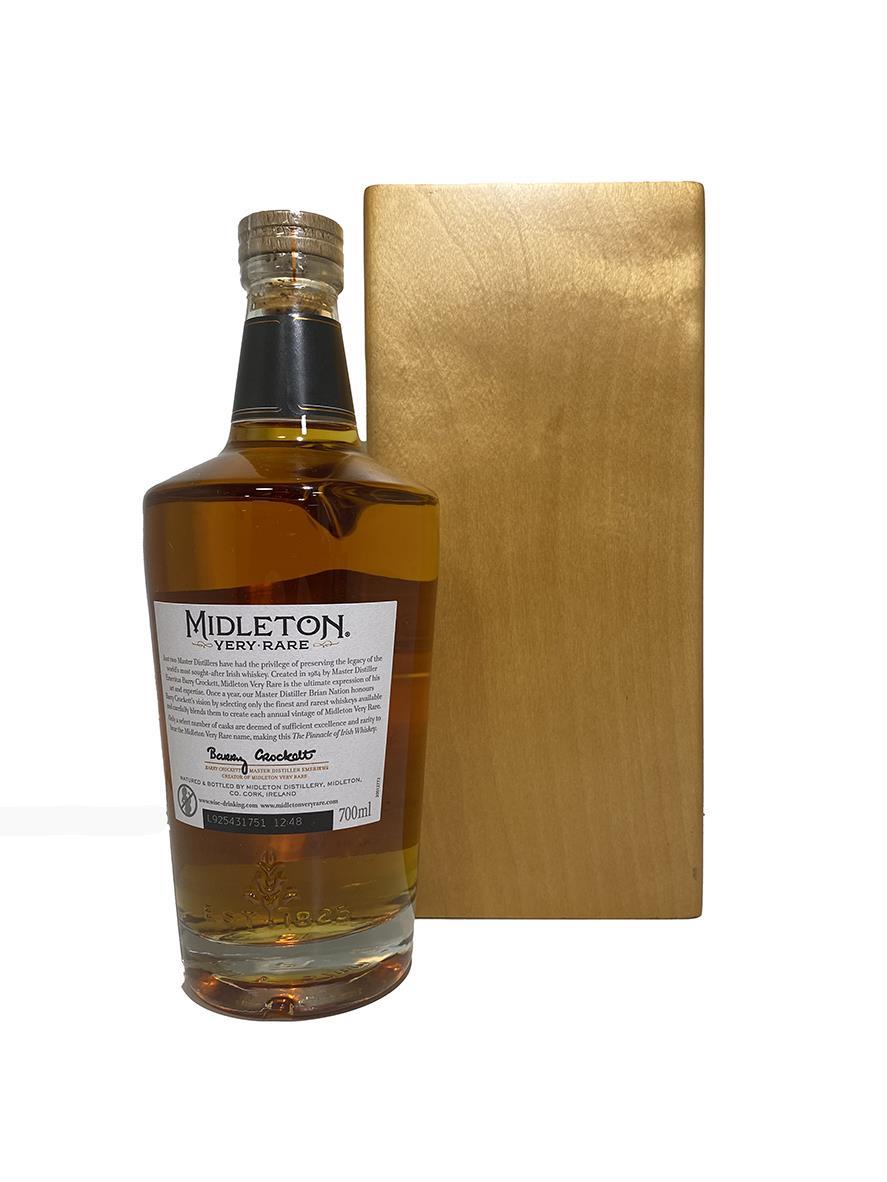 The Midleton Very Rare 2019, is a bottling brought out by the Midleton Distillery in Co. Cork. The ‘Midleton Very Rare’ range was launched in 1984 and a new vintage has been released every year since then. Barry Crockett started off the ‘Midleton Very Rare’ range while he was the Master Distiller of Midleton Distillery, in 2013 Barry Crockett retired from his role of Master Distiller. From 2014 onwards Brian Nation has been creating the ‘Midleton Very Rare’ range, maintaining its role as standard-bearer and pinnacle of Irish Whiskey. The bottle and gift box in great condition also include the cert and distillery invite. Bottle number 27673