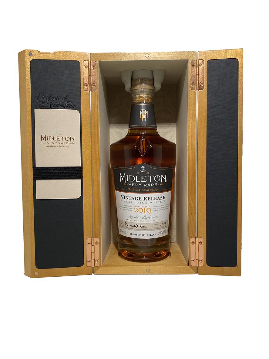 The Midleton Very Rare 2019, is a bottling brought out by the Midleton Distillery in Co. Cork. The ‘Midleton Very Rare’ range was launched in 1984 and a new vintage has been released every year since then. Barry Crockett started off the ‘Midleton Very Rare’ range while he was the Master Distiller of Midleton Distillery, in 2013 Barry Crockett retired from his role of Master Distiller. From 2014 onwards Brian Nation has been creating the ‘Midleton Very Rare’ range, maintaining its role as standard-bearer and pinnacle of Irish Whiskey. The bottle and gift box in great condition also include the cert and distillery invite. Bottle number 27673