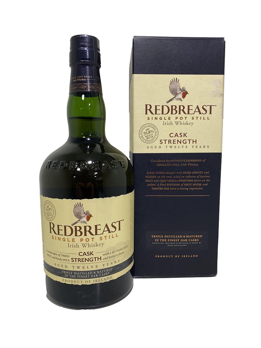 The award-winning Redbreast Cask Strength 12 Year Old. The Cask Strength has perhaps been one of the most favourably received and won 'Irish Whiskey of the Year' in the 2013 Irish Whiskey Awards. Most of the maturation is done in sherry casks but with careful selection so that the sherry character does not overpower the whiskey. The pot still content really shines through which explains why it has been winning so many awards.This is batch 2/19