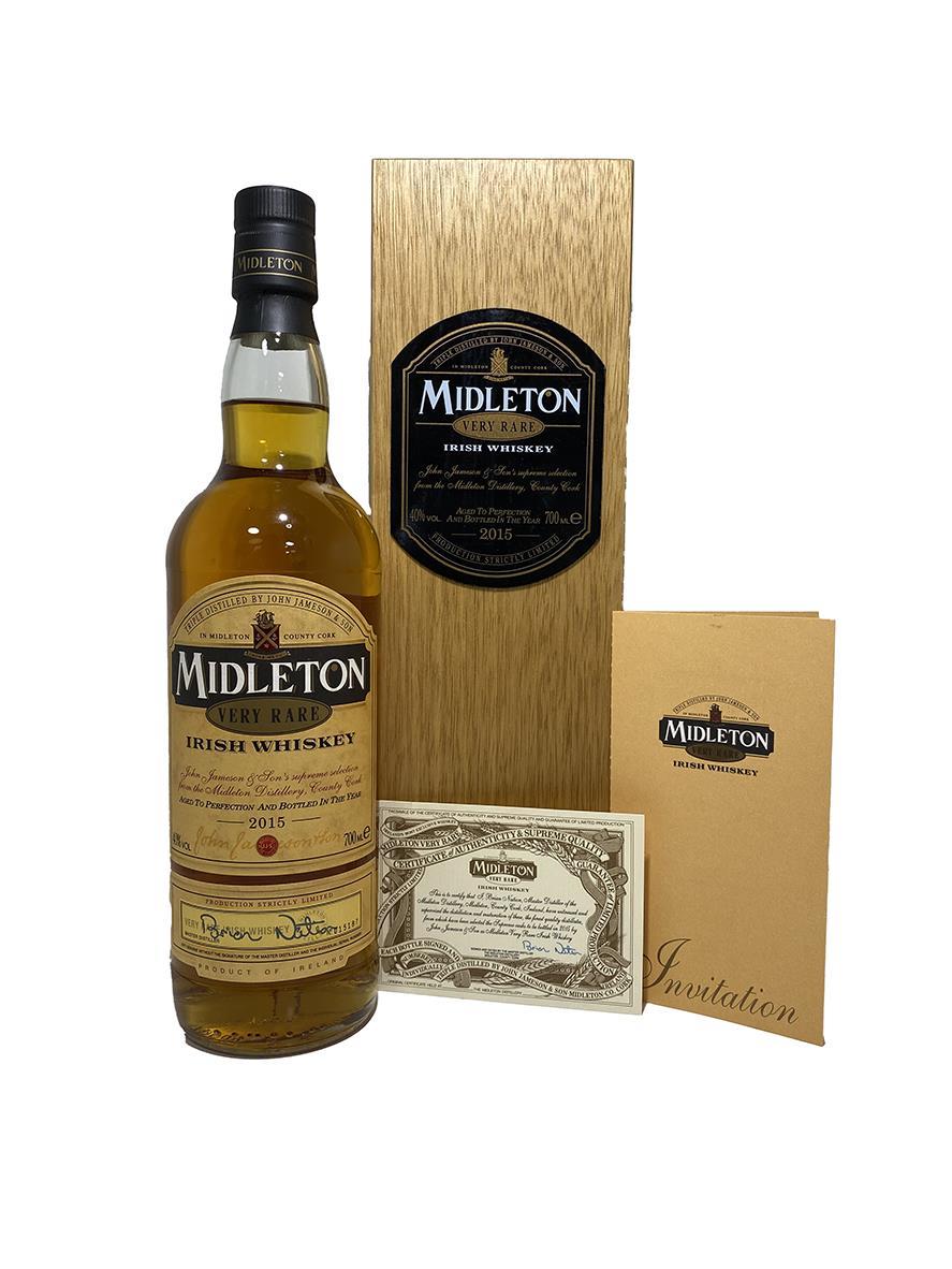 The Midleton Very Rare 2015, is a bottling brought out by the Midleton Distillery in Co. Cork. The ‘Midleton Very Rare’ range was launched in 1984 and a new vintage has been released every year since then. Barry Crockett started off the ‘Midleton Very Rare’ range while he was the Master Distiller of Midleton Distillery, The bottle and box are in excellent condition and include the distillery invite and certificate. Bottle number 15187