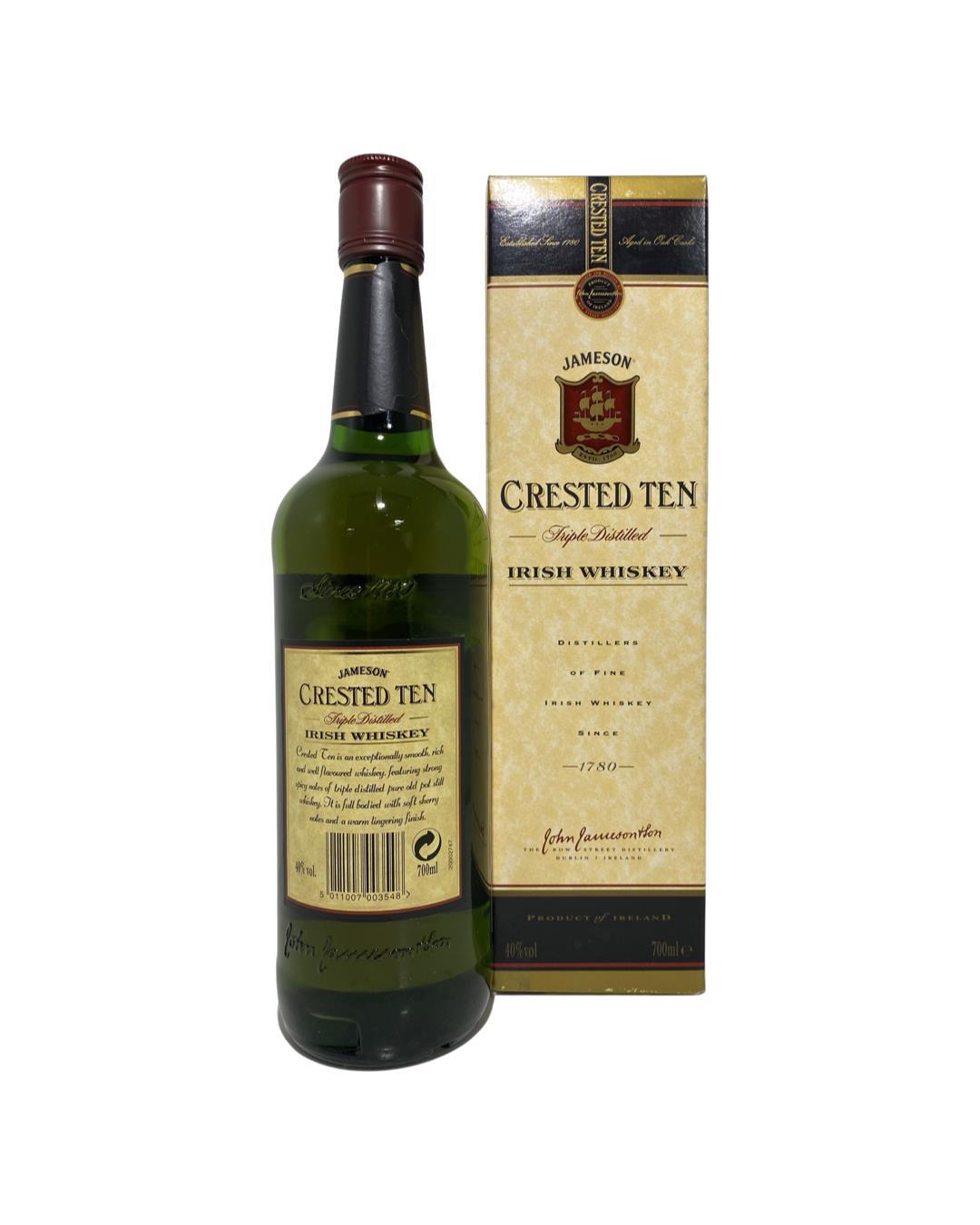 This is the older version of Jameson Crested Ten (now relabelled as simply 'Crested').Its been said amongst the whiskey community that thi is a far better example than the standard Jameson, it has just a bit more flavour and complexity, meaning it is a little easier to drink straight up without a mixer or ice! The blend composition is very similar to the regular Jameson but has a little more ageing. Some extra use of sherry casks also adds some nice weight and spicy fruitiness.