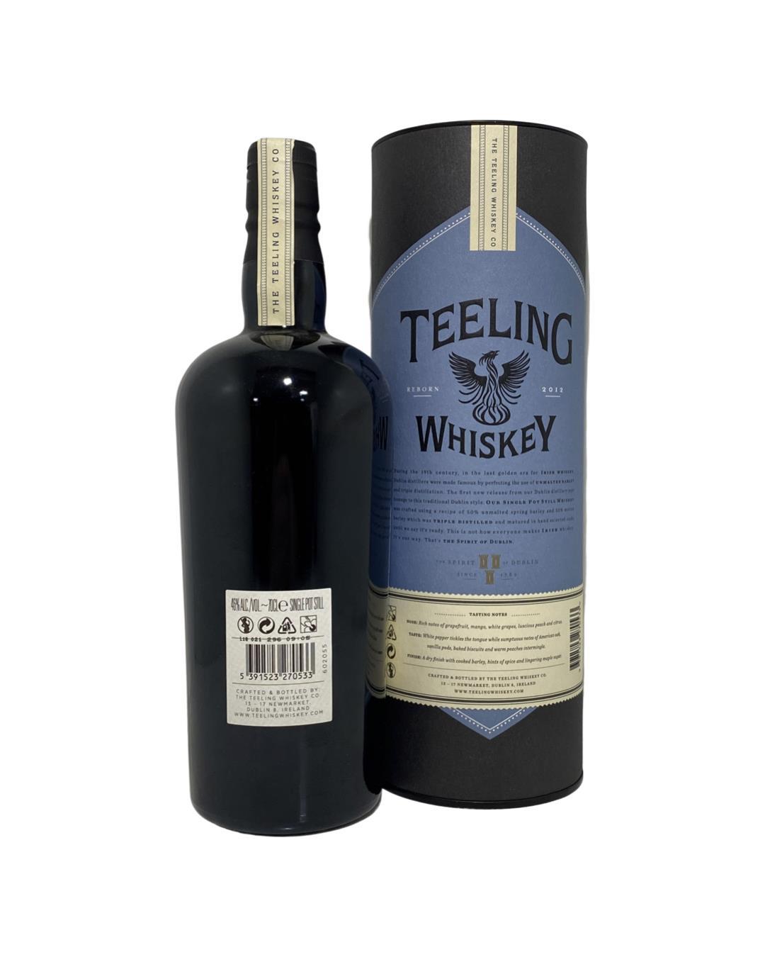 Introducing Teeling Single Pot Still, Dublin's spirit re-born. Crafted using a recipe of 50% unmalted and 50% malted barley matured in a combination of virgin oak, ex-wine and ex-bourbon barrels. An abundance of orchard fruit flavours with a hint of peppery spice!