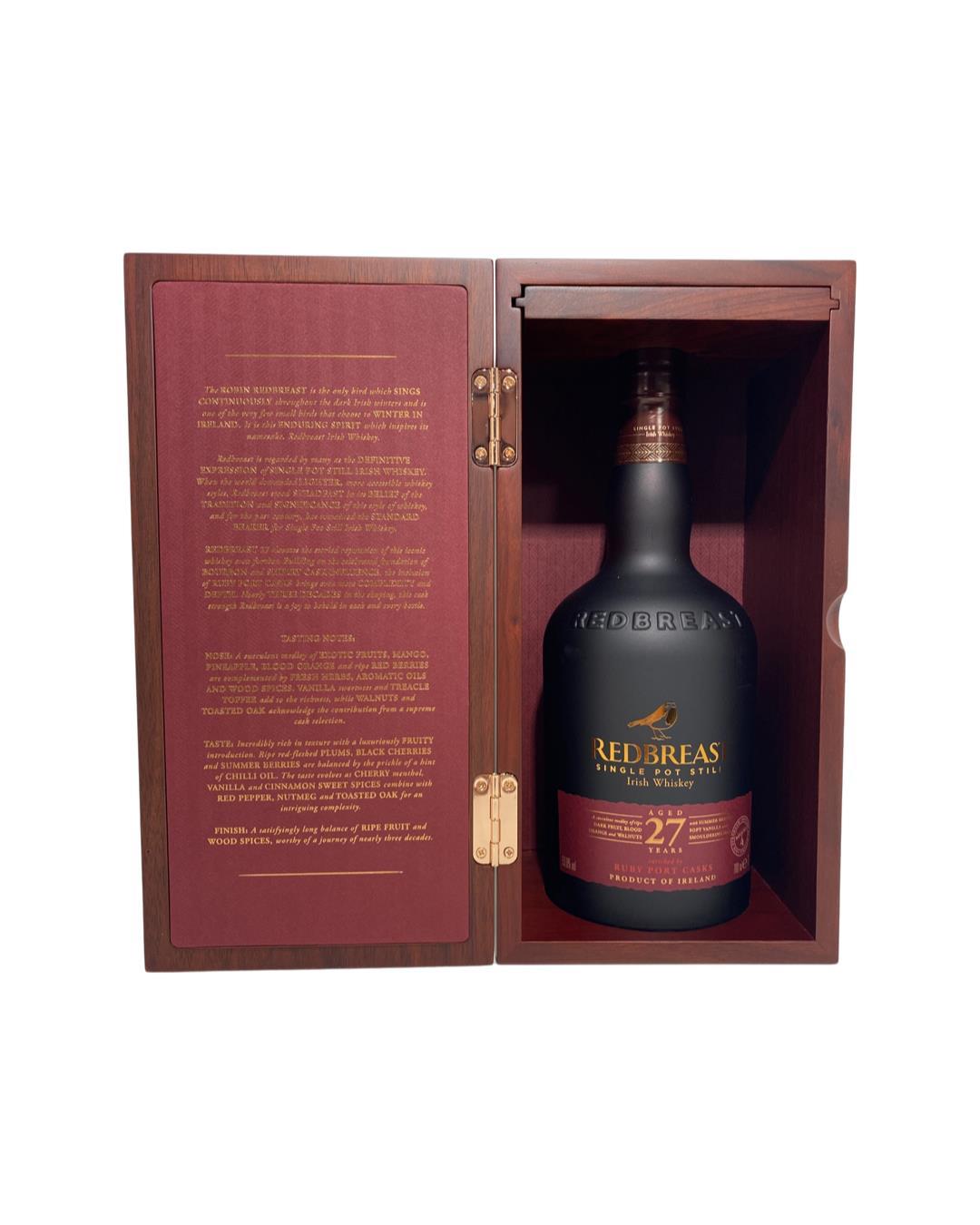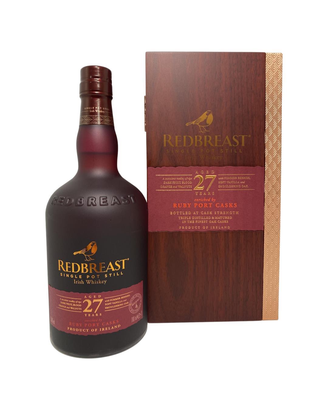 The oldest permanent release in the Redbreast family. Redbreast 27 years old builds on the traditional Sherry & Bourbon finish by adding a Port finish which brings even more complexity and depth.