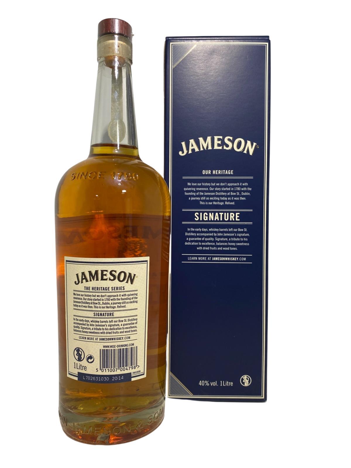 Jameson Signature was aged in top-quality American bourbon barrels and Spanish Oloroso sherry casks. With a high pot still content and the significant flavour contribution from oloroso sherry casks, this whiskey is as sophisticated as it is balanced. It wasonly available in Travel Retail outlets.