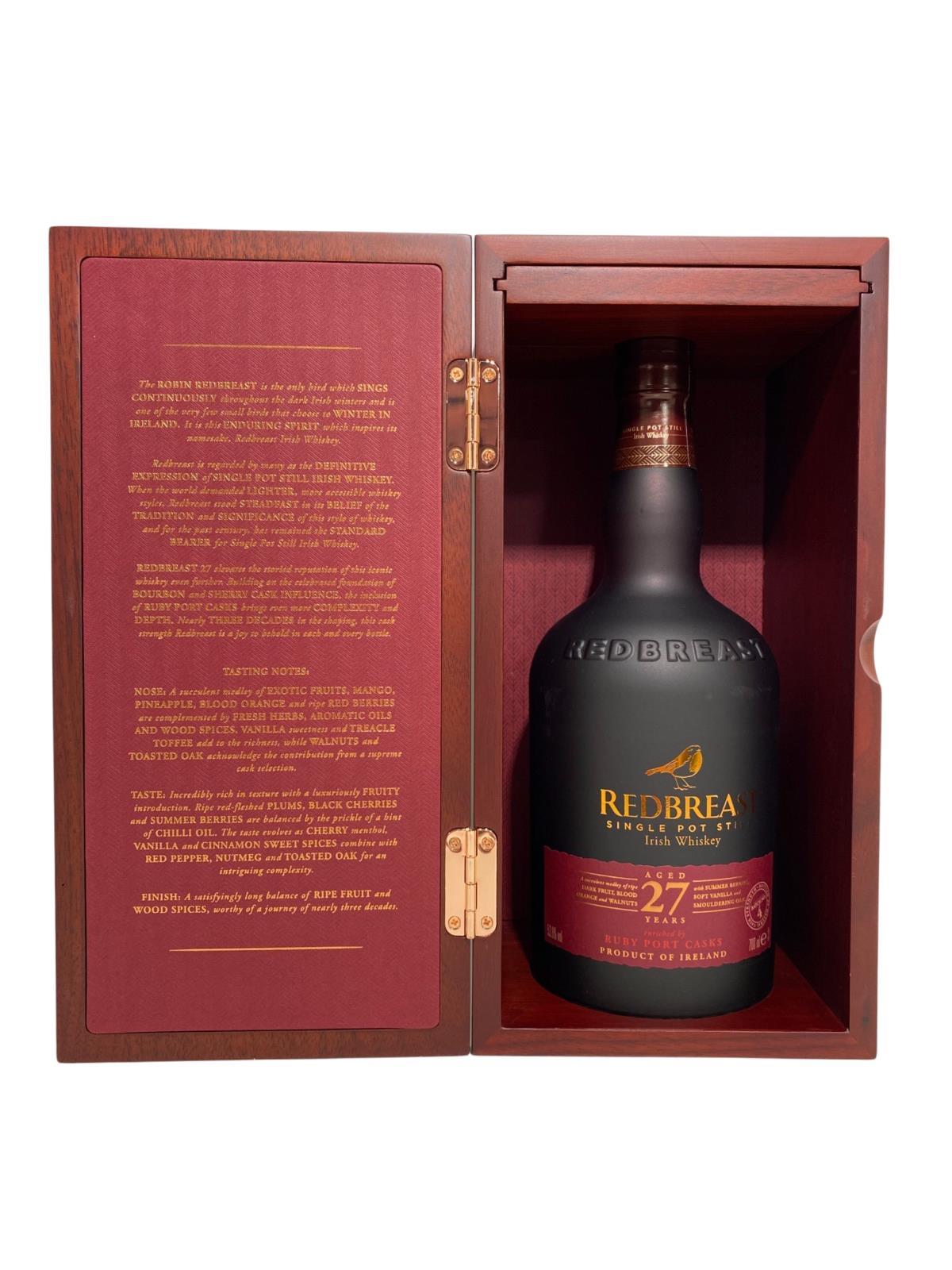 The oldest permanent release in the Redbreast family. Redbreast 27 years old builds on the traditional Sherry & Bourbon finish by adding a Port finish which brings even more complexity and depth.