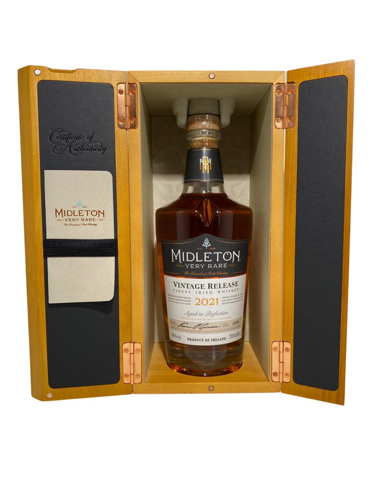 The 2021 edition to Ireland's most premium and beloved whiskey series; Midleton Very Rare. This is the 38th installment and the first release under Kevin O' Gorman appointed Master Distiller of the Midleton Distillery in 2020. Both the bottle and gift box are in very good condition, certificate and distillery invite are also included.