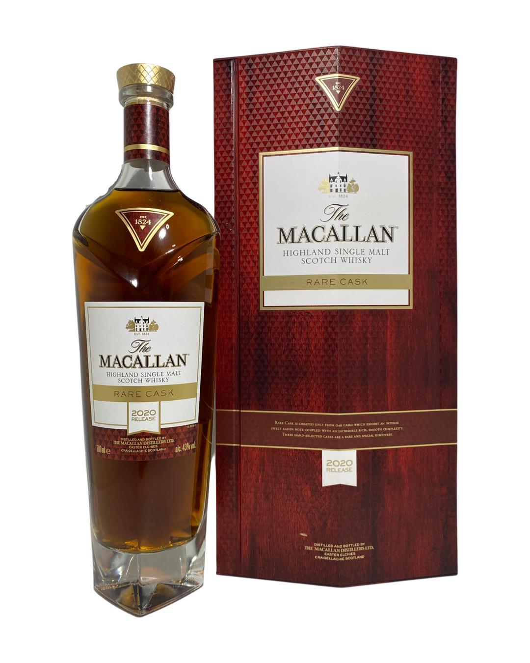 Macallan Rare Cask 2020 release! Like other releases in the series, Rare Cask is crafted from the finest and rarest sherry seasoned oak casks to create an extraordinary whisky. This expression offers an intense sweet raisin note, soft vanilla, and a sweet fusion of fresh apple, lemon, and orange, coupled with a rich, velvety smooth mouthfeel, notes of dark chocolate, and complexity to provide an indulgent and highly sensorial whisky experience.