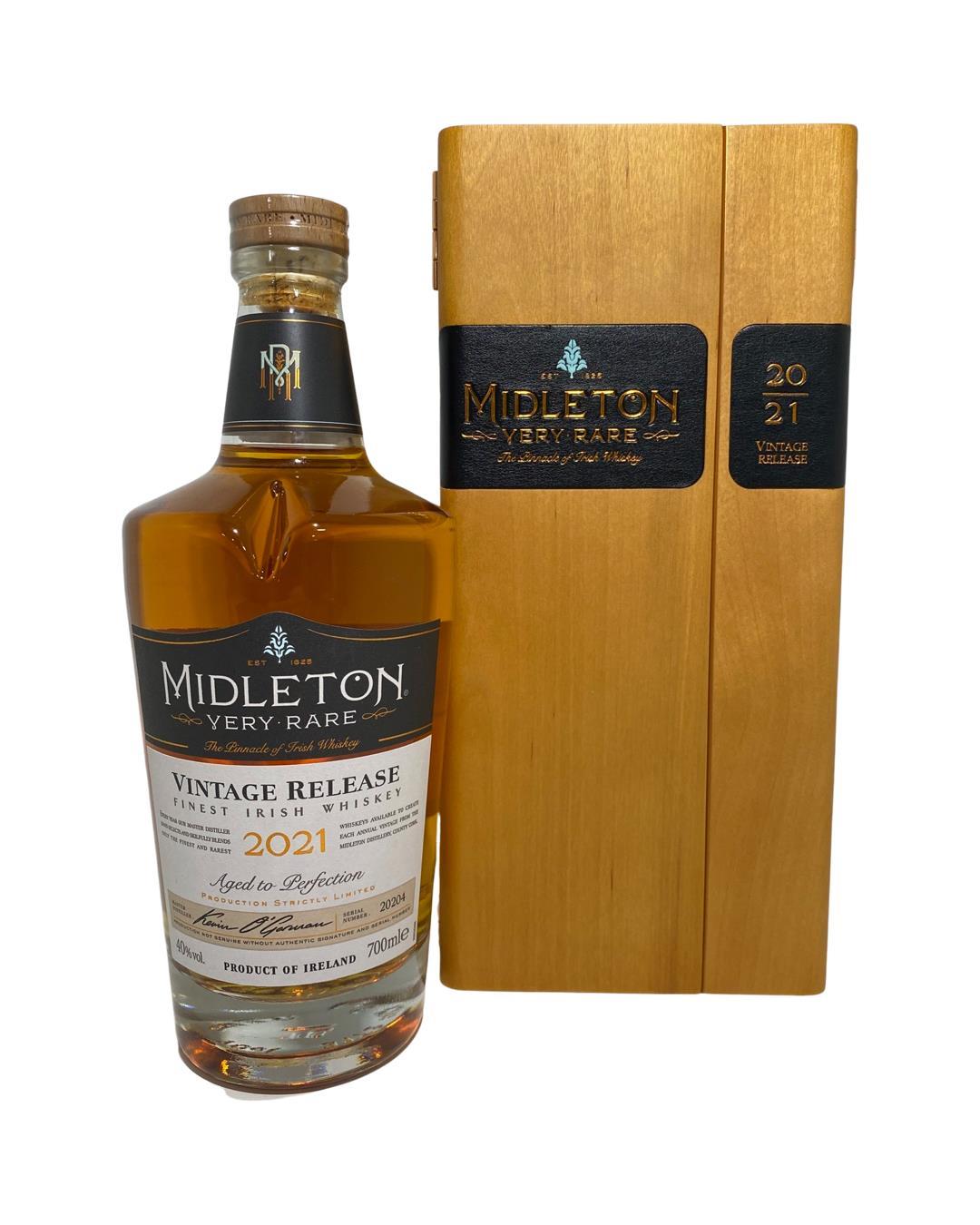 The 2021 edition to Ireland's most premium and beloved whiskey series; Midleton Very Rare. This is the 38th installment and the first release under Kevin O' Gorman appointed Master Distiller of the Midleton Distillery in 2020. Both the bottle and gift box are in very good condition, certificate and distillery invite are also included.