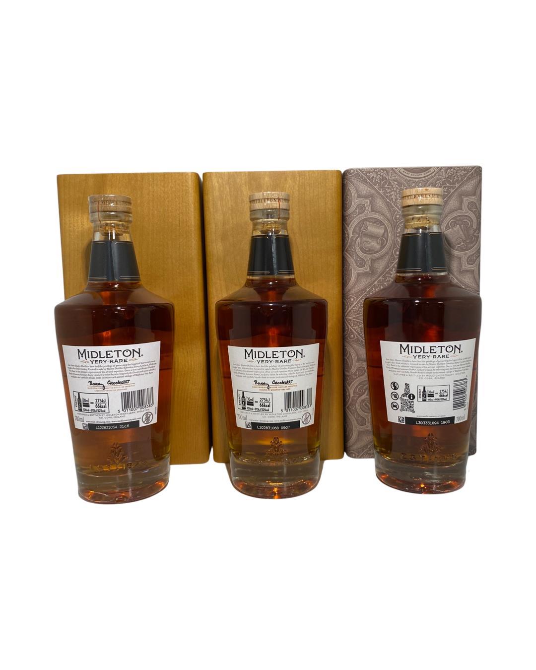A great collection of the last 3 releases from the Midleton Very Rare rang. The perfect starting point for new collectors or for those who missed some years. This includes The 2021 edition to Ireland's most premium and beloved whiskey series; Midleton Very Rare. This is the 38th installment and the first release under Kevin O' Gorman appointed Master Distiller of the Midleton Distillery in 2020. Both the bottle and gift box are in very good condition, certificate and distillery invite are also included.The 2022 edition to Ireland's most premium and beloved whiskey series; Midleton Very Rare. This is the 39th installment and the first release under Kevin O' Gorman appointed Master Distiller of the Midleton Distillery in 2020. Both the bottle and gift box are in very good condition, certificate and distillery invite are also included.The latest chapter of this renowned collection is adorned with the signature of Master Distiller, Kevin O’Gorman. After months of exploration, O’Gorman crafted a balanced blend of rare and hand-selected single pot still and single grain Irish whiskeys from Midleton’s exclusive inventory to create this truly special release. This years release has new more sustainable packaging. Showing the new way midleton is thinking to combat climate change.