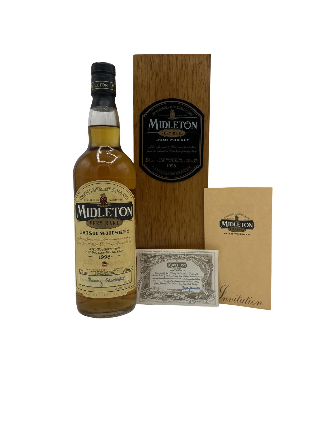 The Midleton Very Rare 1998, is a bottling brought out by the Midleton Distillery in Co. Cork. The ‘Midleton Very Rare’ range was launched in 1984 and a new vintage has been released every year since then. Barry Crockett started off the ‘Midleton Very Rare’ range while he was the Master Distiller of Midleton Distillery. The Midleton Very Rare range of whiskeys is a collection of highly regarded Irish whiskeys crafted at the Midleton Distillery in County Cork, Ireland. With a reputation for excellence, these whiskeys are known for their exceptional quality, craftsmanship, and limited availability. Characterized by smoothness, complexity, and depth of flavour, Midleton Very Rare often exhibits notes of ripe fruits, honey, vanilla, spices, and oak. The component casks are typically aged for around 12-27 years but each yearly batch is unique and for this reason the whiskeys are highly collectible. To this day the Midleton Very Rare series is still regarded as the pinnacle and benchmark for ultra-premium blended Irish whiskeys.