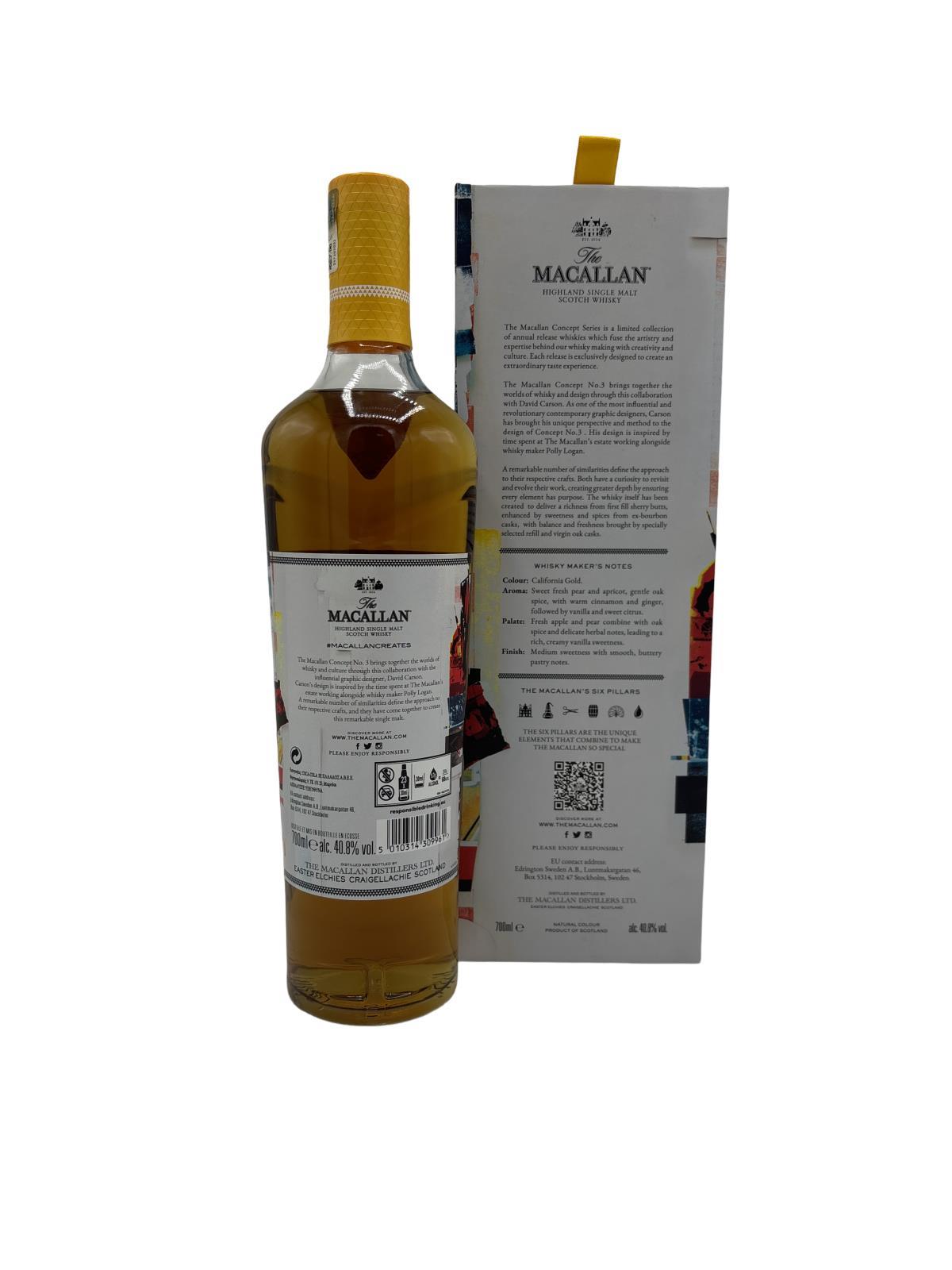 Concept Number 3 is the third and final release in the Concept Series – a collection that fuses the artistry and expertise behind whisky making with creativity and culture.Available at Global Travel Retail outlets, this release brings together the world of whisky and graphic design.The Macallan Distillery, located in Craigellachie, Scotland, is renowned for its exceptional single malt Scotch whiskies with a strong tradition of maturation in quality Sherry casks. A rich history dating back to 1824, Macallan has established itself as a symbol of luxury and craftsmanship. Nestled within the beautiful Speyside region, the distillery's stunning architectural design seamlessly blends with the surrounding landscape. Its unique production process combines traditional methods with cutting-edge technology, resulting in whiskies of unparalleled quality. ‘The Macallan’ stands as a symbol of excellence in the whisky world. Its whiskies are known for their complexity, craftsmanship, and attention to detail. From their core expressions to exclusive releases, Macallan continues to captivate whisky connoisseurs and collectors with its exceptional range of single malt Scotch whiskies.