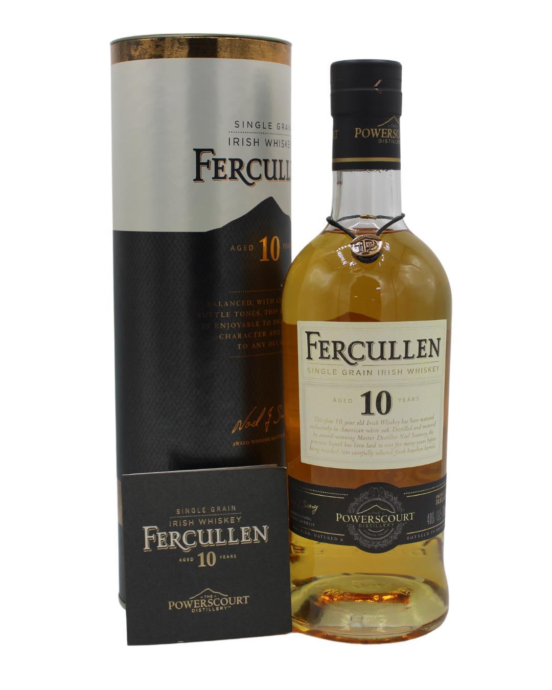 Fercullen 10 Year Old Single Grain, now discontinued, Distilled by Master Distiller Noel Sweeney. This Whiskey was matured exclusively in carefully selected ex-Bourbon barrels. Flavours of vanilla and orchard fruits dominate the palate.