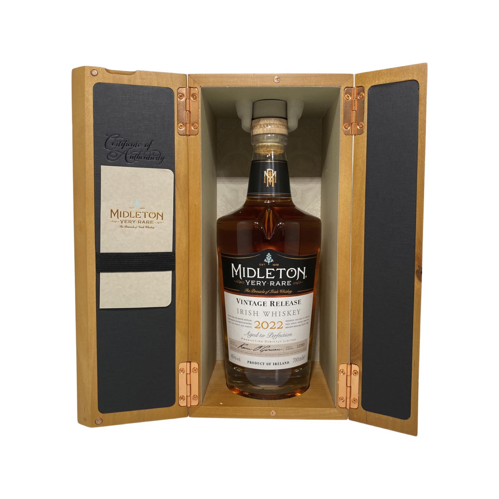 The 2022 edition to Ireland's most premium and beloved whiskey series; Midleton Very Rare. This is the 39th installment and the first release under Kevin O' Gorman appointed Master Distiller of the Midleton Distillery in 2020. Both the bottle and gift box are in very good condition, certificate and distillery invite are also included.
