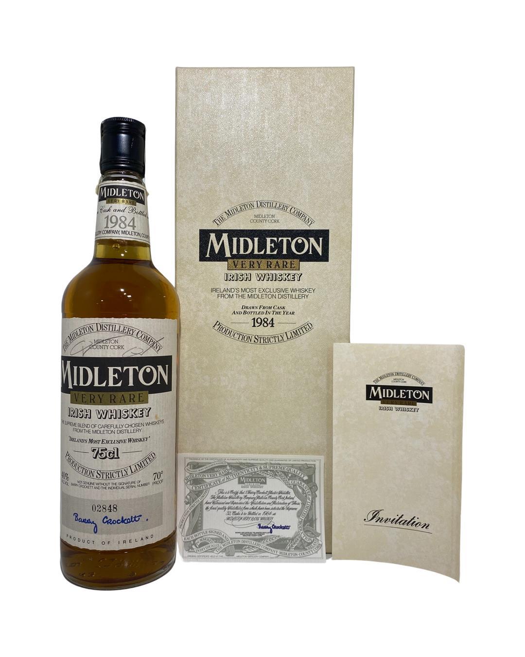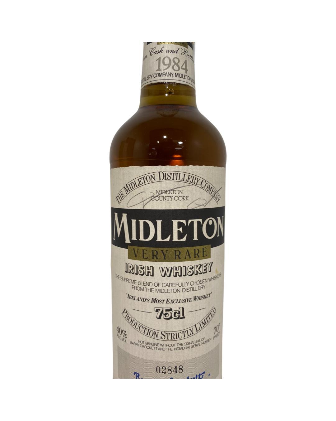 A rare and collectible bottle of Midleton Rare from the 1984 vintage when the master distiller was Barry Crockett. The Midleton Very Rare 1984 is the first edition of the Very Rare Series that is now a quintesential part of Irish whiskey history having begun in 1984 they have since released a new vintage every year. The Midleton Very Rare range of whiskeys is a collection of highly regarded Irish whiskeys crafted at the Midleton Distillery in County Cork, Ireland. With a reputation for excellence, these whiskeys are known for their exceptional quality, craftsmanship, and limited availability. Characterized by smoothness, complexity, and depth of flavour, Midleton Very Rare often exhibits notes of ripe fruits, honey, vanilla, spices, and oak. The component casks are typically aged for around 12-27 years but each yearly batch is unique and for this reason the whiskeys are highly collectible. To this day the Midleton Very Rare series is still regarded as the pinnacle and benchmark for ultra-premium blended Irish whiskeys.