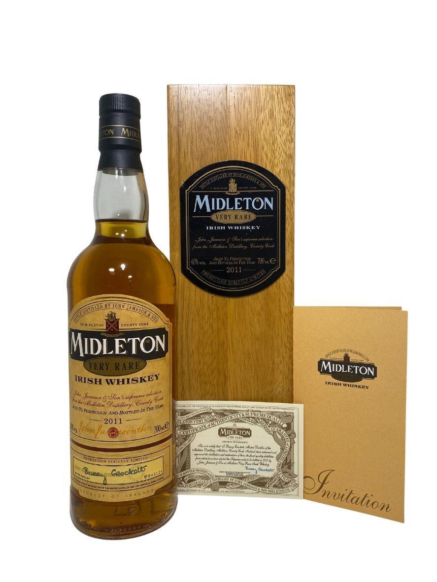 The Midleton Very Rare 2011, is a bottling brought out by the Midleton Distillery in Co. Cork. The ‘Midleton Very Rare’ range was launched in 1984 and a new vintage has been released every year since then. Barry Crockett started off the ‘Midleton Very Rare’ range while he was the Master Distiller of Midleton Distillery, The bottle and box are in excellent condition and include the distillery invite and certificate. Bottle number 43124