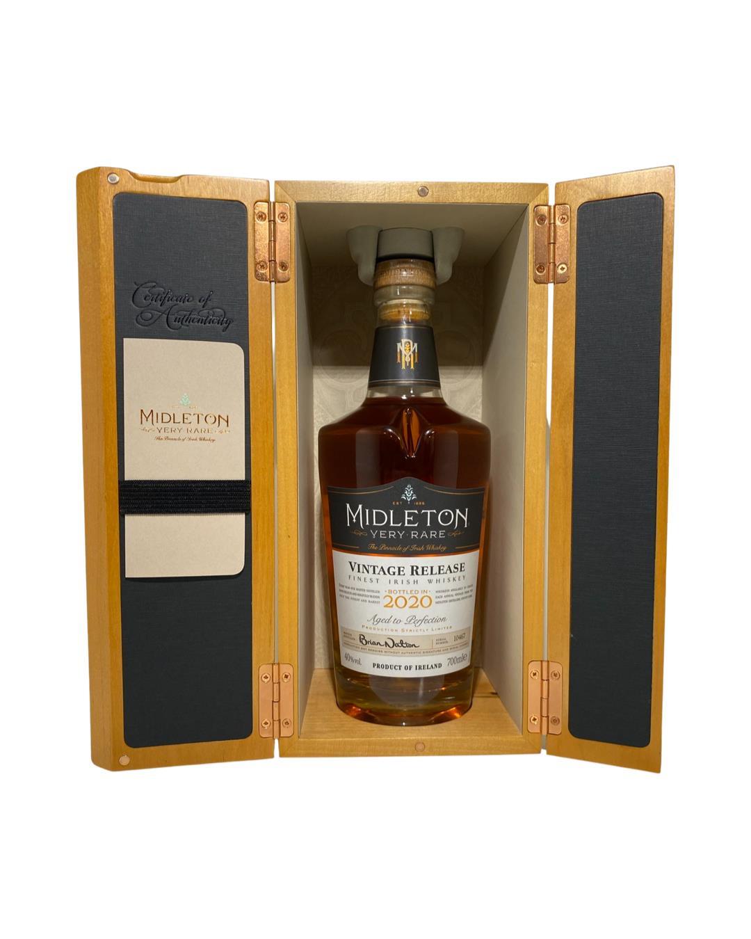 The 2020 edition to Ireland's most premium and beloved whiskey series; Midleton Very Rare. This is the 38th installment and the last release under Brian Nation appointed Master Distiller of the Midleton Distillery in 2014. Both the bottle and gift box are in very good condition, certificate and distillery invite are also included. The Midleton Very Rare range of whiskeys is a collection of highly regarded Irish whiskeys crafted at the Midleton Distillery in County Cork, Ireland. With a reputation for excellence, these whiskeys are known for their exceptional quality, craftsmanship, and limited availability. Characterized by smoothness, complexity, and depth of flavour, Midleton Very Rare often exhibits notes of ripe fruits, honey, vanilla, spices, and oak. The component casks are typically aged for around 12-27 years but each yearly batch is unique and for this reason the whiskeys are highly collectible. To this day the Midleton Very Rare series is still regarded as the pinnacle and benchmark for ultra-premium blended Irish whiskeys.