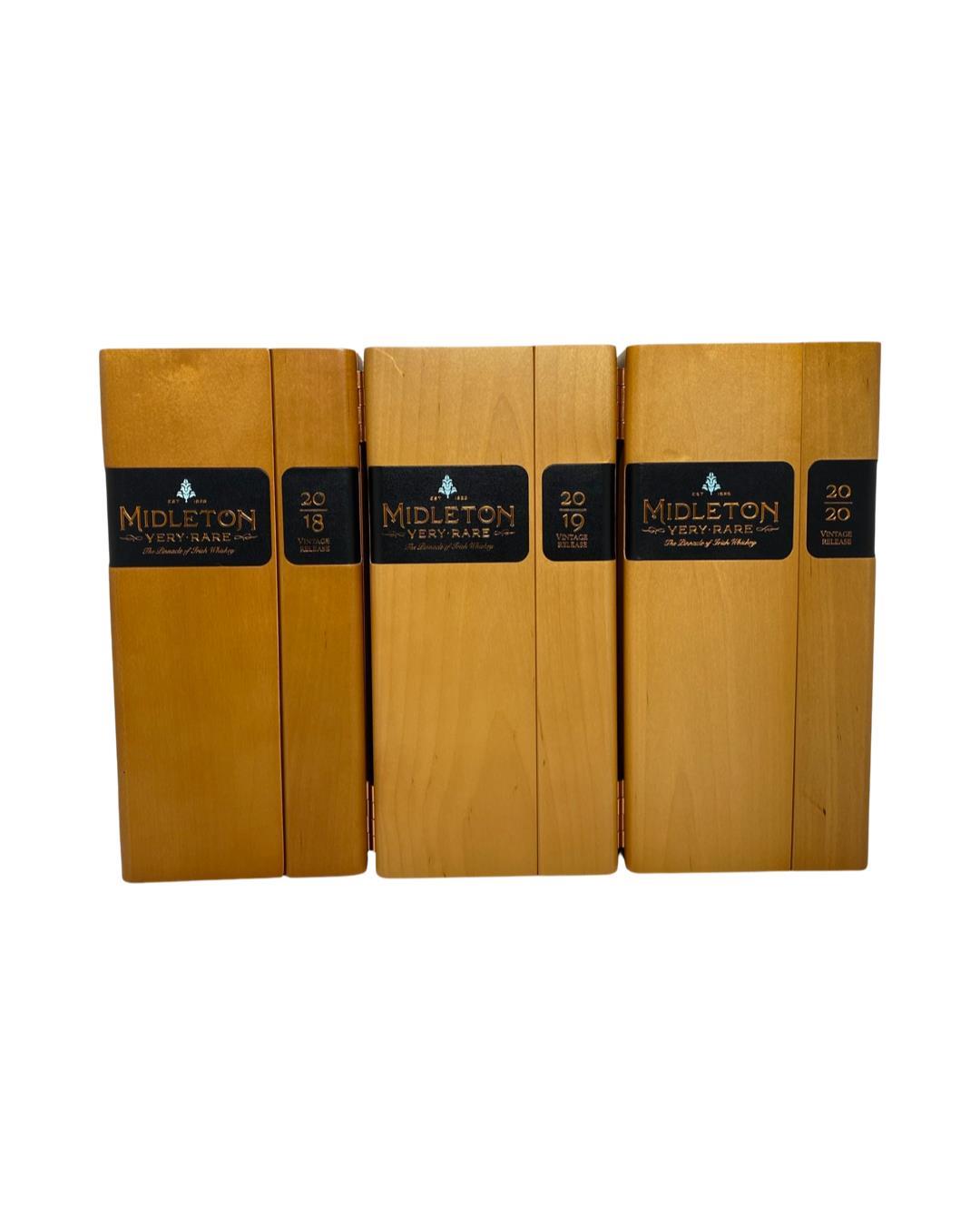A set of 3 from the Midleton Very Rare series. The Midleton Very Rare range of whiskeys is a collection of highly regarded Irish whiskeys crafted at the Midleton Distillery in County Cork, Ireland. With a reputation for excellence, these whiskeys are known for their exceptional quality, craftsmanship, and limited availability. Characterized by smoothness, complexity, and depth of flavour, Midleton Very Rare often exhibits notes of ripe fruits, honey, vanilla, spices, and oak. The component casks are typically aged for around 12-27 years but each yearly batch is unique and for this reason the whiskeys are highly collectible. To this day the Midleton Very Rare series is still regarded as the pinnacle and benchmark for ultra-premium blended Irish whiskeys.