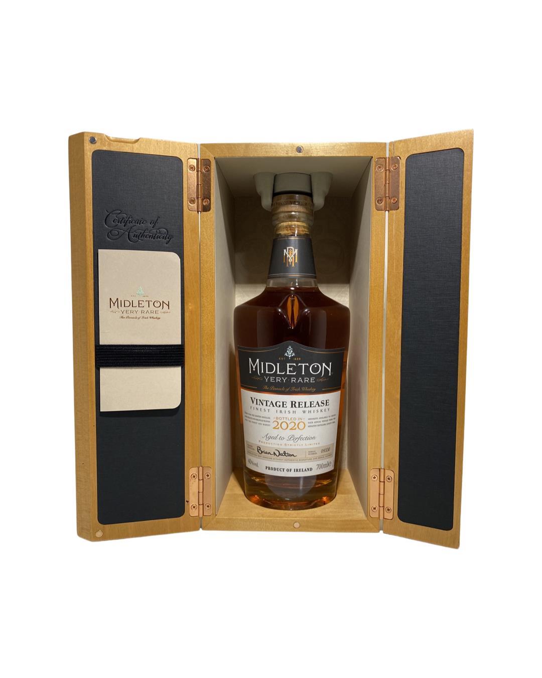 The 2020 edition to Ireland's most premium and beloved whiskey series; Midleton Very Rare. This is the 38th installment and the last release under Brian Nation appointed Master Distiller of the Midleton Distillery in 2014. Both the bottle and gift box are in very good condition, certificate and distillery invite are also included.  The Midleton Very Rare range of whiskeys is a collection of highly regarded Irish whiskeys crafted at the Midleton Distillery in County Cork, Ireland. With a reputation for excellence, these whiskeys are known for their exceptional quality, craftsmanship, and limited availability. Characterized by smoothness, complexity, and depth of flavour, Midleton Very Rare often exhibits notes of ripe fruits, honey, vanilla, spices, and oak. The component casks are typically aged for around 12-27 years but each yearly batch is unique and for this reason the whiskeys are highly collectible. To this day the Midleton Very Rare series is still regarded as the pinnacle and benchmark for ultra-premium blended Irish whiskeys.