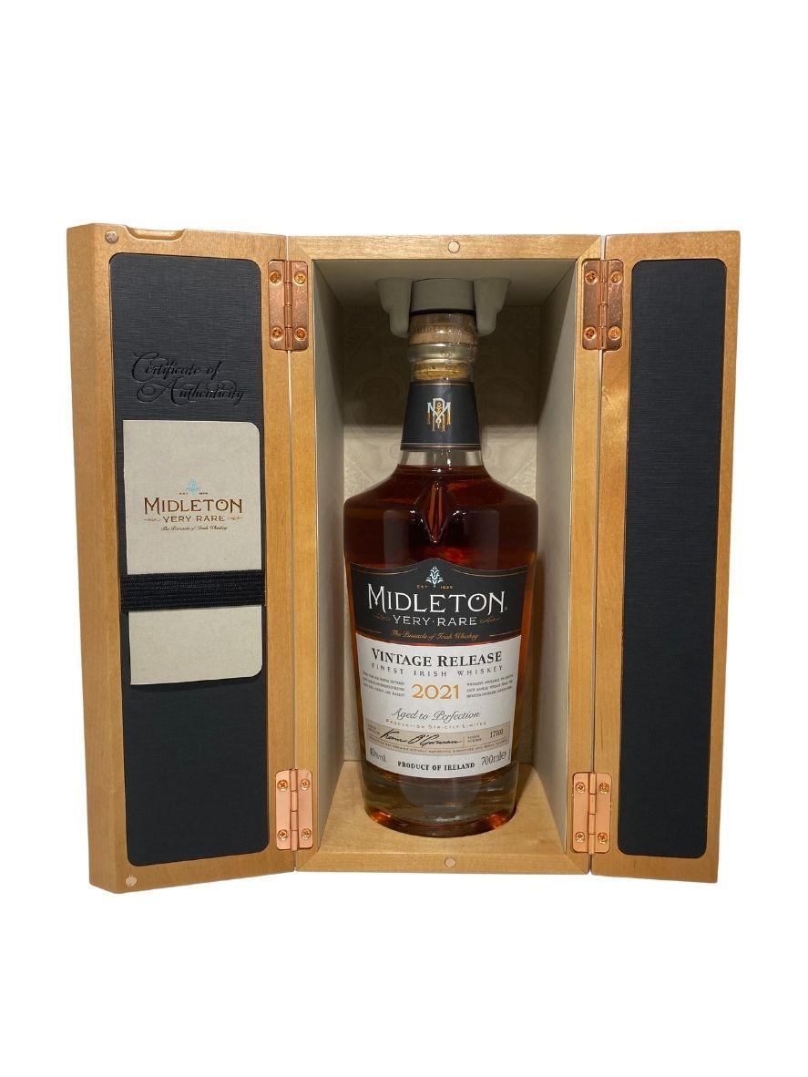 The 2021 edition to Ireland's most premium and beloved whiskey series; Midleton Very Rare. This is the 38th installment and the first release under Kevin O' Gorman appointed Master Distiller of the Midleton Distillery in 2020. Both the bottle and gift box are in very good condition, certificate and distillery invite are also included. Bottle number 17701