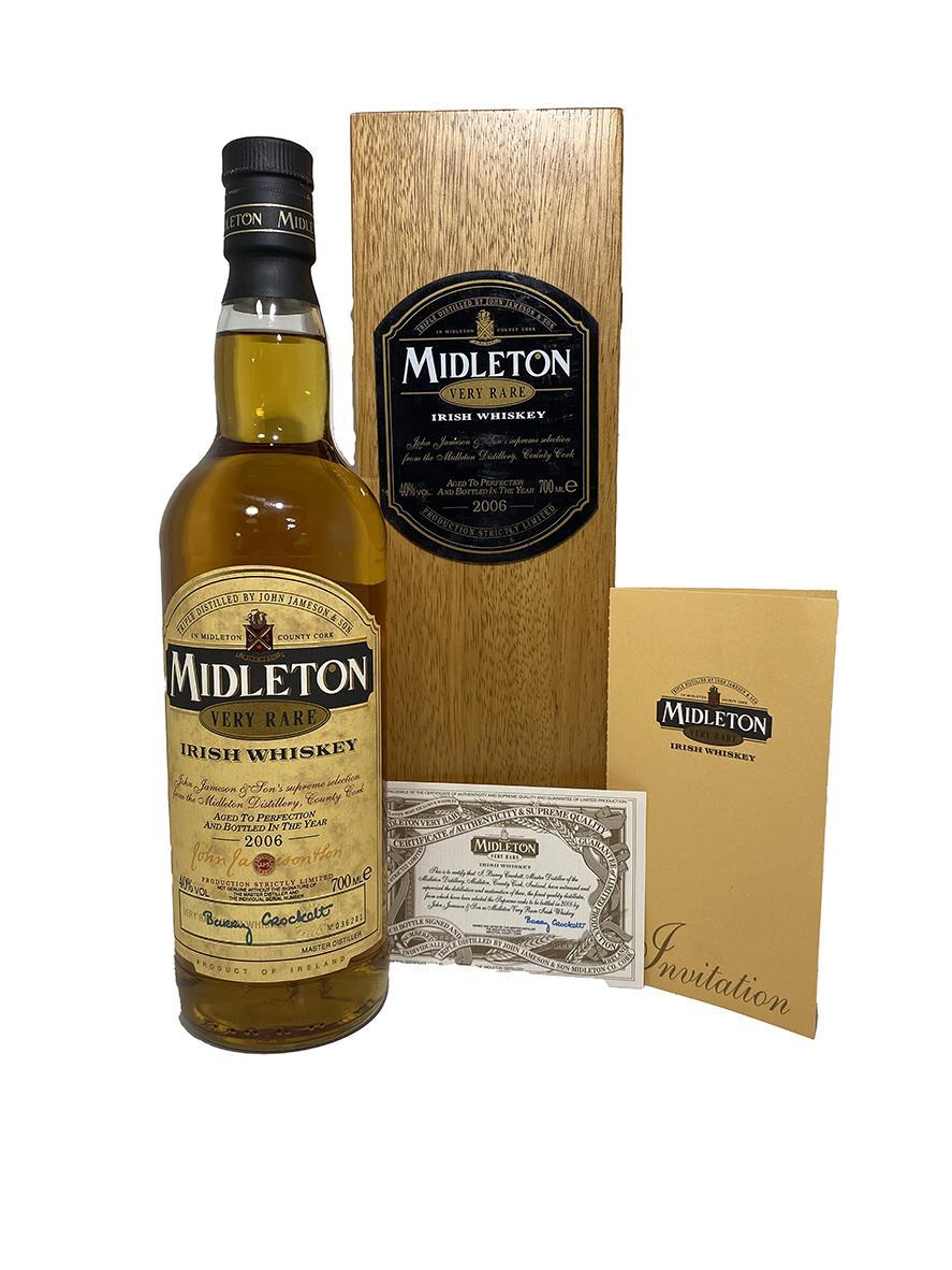 The Midleton Very Rare 2006, is a bottling brought out by the Midleton Distillery in Co. Cork. The ‘Midleton Very Rare’ range was launched in 1984 and a new vintage has been released every year since then. Barry Crockett started off the ‘Midleton Very Rare’ range while he was the Master Distiller of Midleton Distillery, The bottle and box are in excellent condition and include the distillery invite and certificate. Bottle number 36201.