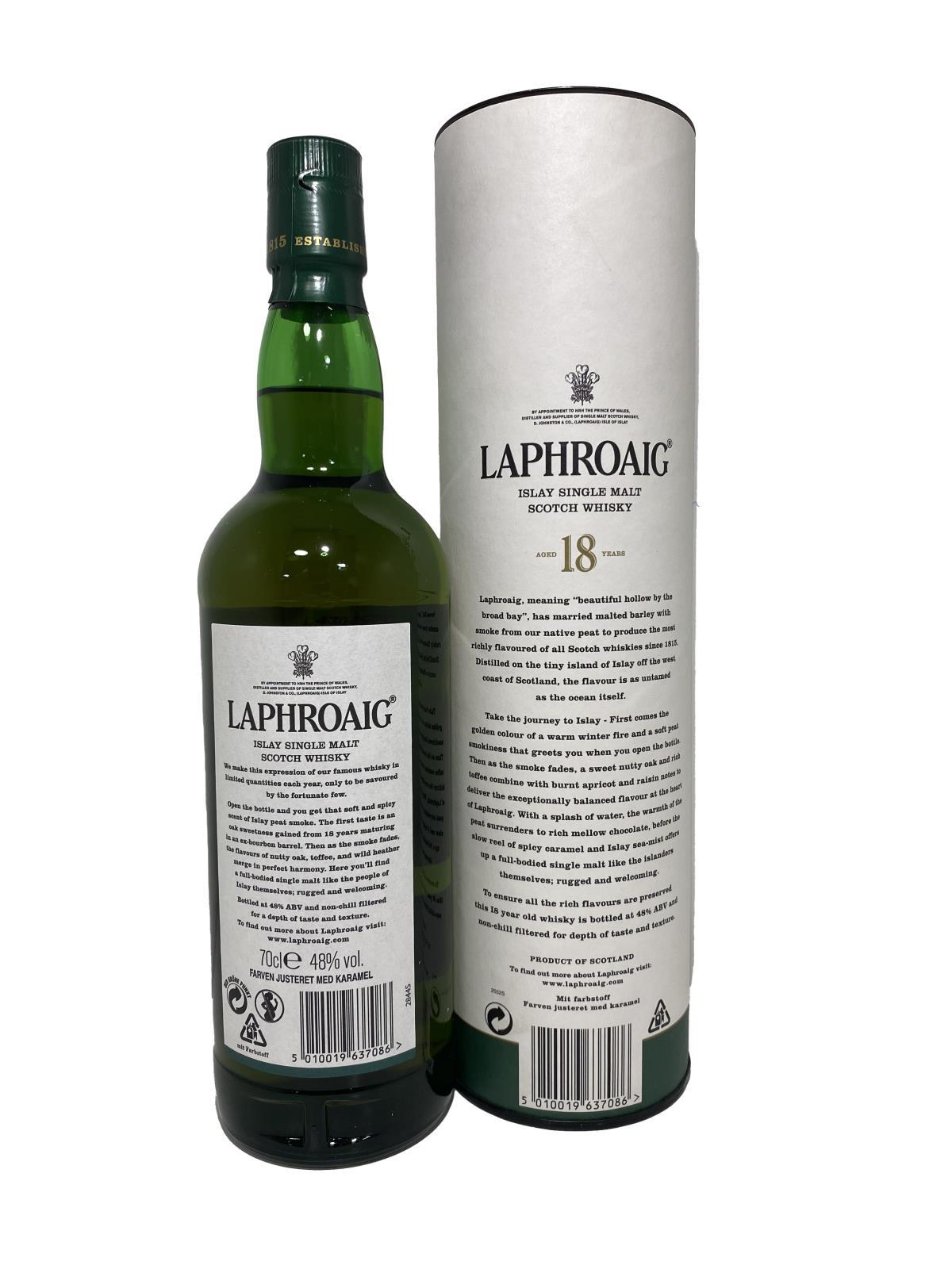Laphroaig 18yo was introduced in 2009 as a replacement for the old 15 Year Old (A favourite amongst some royal family members). This is a stronger, altogether gutsier affair at 48%.A big and bold expression of Laphroaig that manages to be both intensely smoky but also well rounded with a sweet, oakiness.