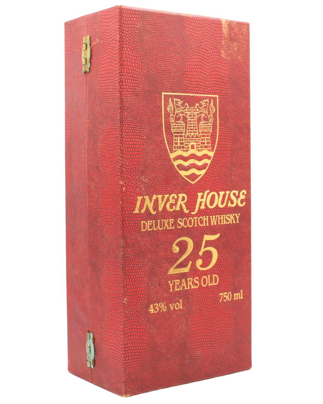 A 1990s crystal decanter bottling produced by Inverhouse containing whisky older than 25 years. Includes stopper and presentation box.