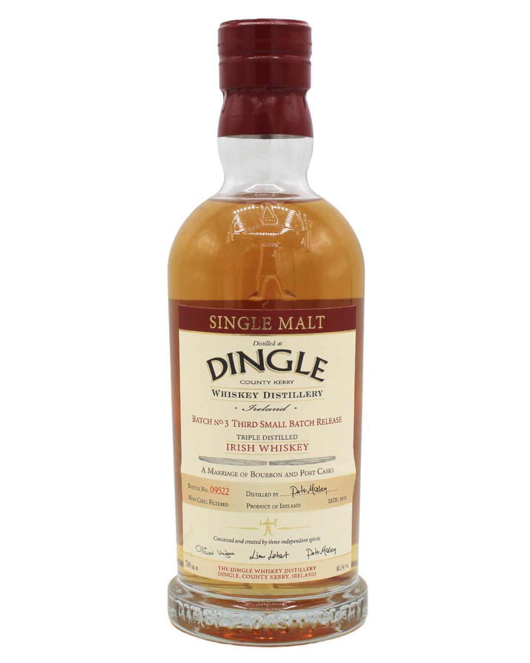 Batch 3 of Dingle Single Malt was created through the marriage of Port and Bourbon casks, resulting in a beautifully balanced and characterful expression. Layers of dark fruits, citrus, chocolate, and gentle spice unfold across the palate, while the texture is creamy at first before giving way to a crisp, fresh finish.