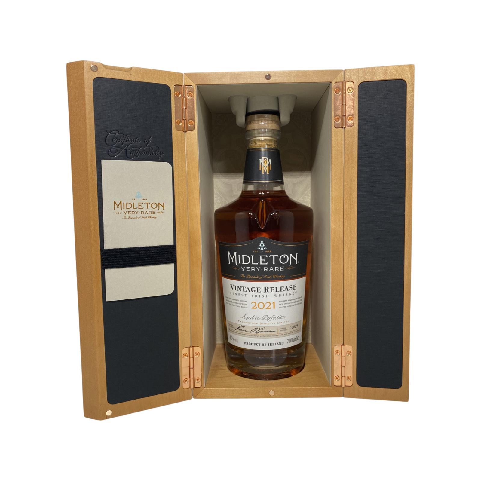 The 2021 edition to Ireland's most premium and beloved whiskey series; Midleton Very Rare. This is the 38th installment and the first release under Kevin O' Gorman appointed Master Distiller of the Midleton Distillery in 2020. Both the bottle and gift box are in very good condition, certificate and distillery invite are also included. Bottle number 16029