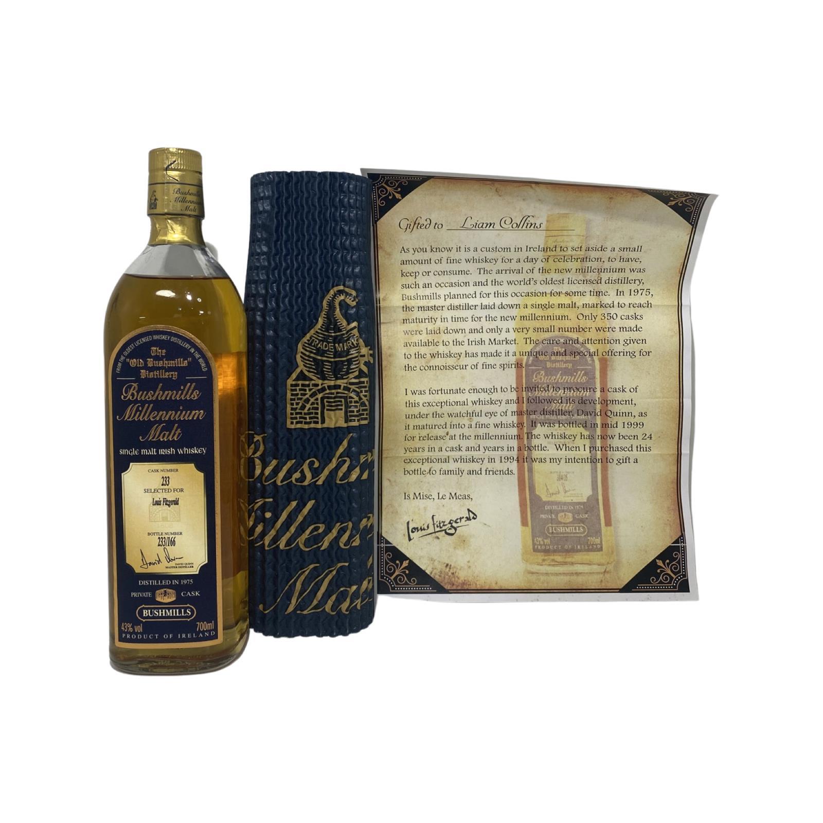Private investors were invited to purchase entire casks of the stuff long before it was bottled. What resulted is the longest aged Bushmills whiskey available. It has matured very well. Each cask was bottled unfiltered and taken down to 43% abv, with the label bearing the name of the cask owner, or whatever else they wanted to put on it... The whiskey was never intended to be released for general sale. Each cask will differ slightly in terms of flavour but the general consensus is that they are very good whiskeys. There is no age statement on the bottles, but they're just about all 24 years old.