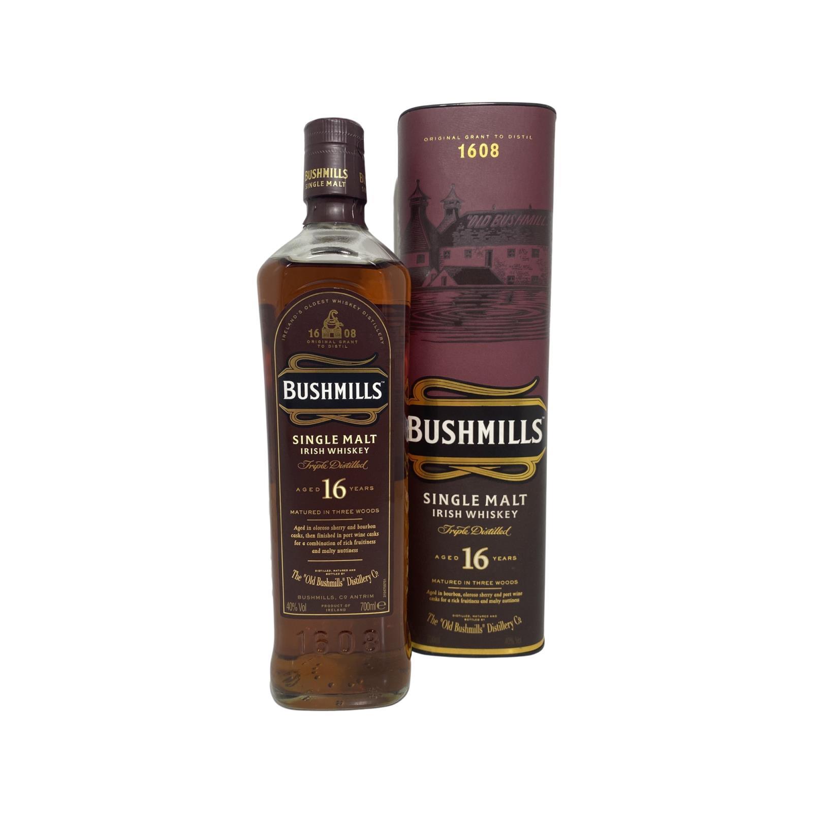 The Bushmills 16 year old single malt is matured in three different woods. Oloroso sherry and bourbon casks are used for the first 16 years, before finishing in port wine barrels.