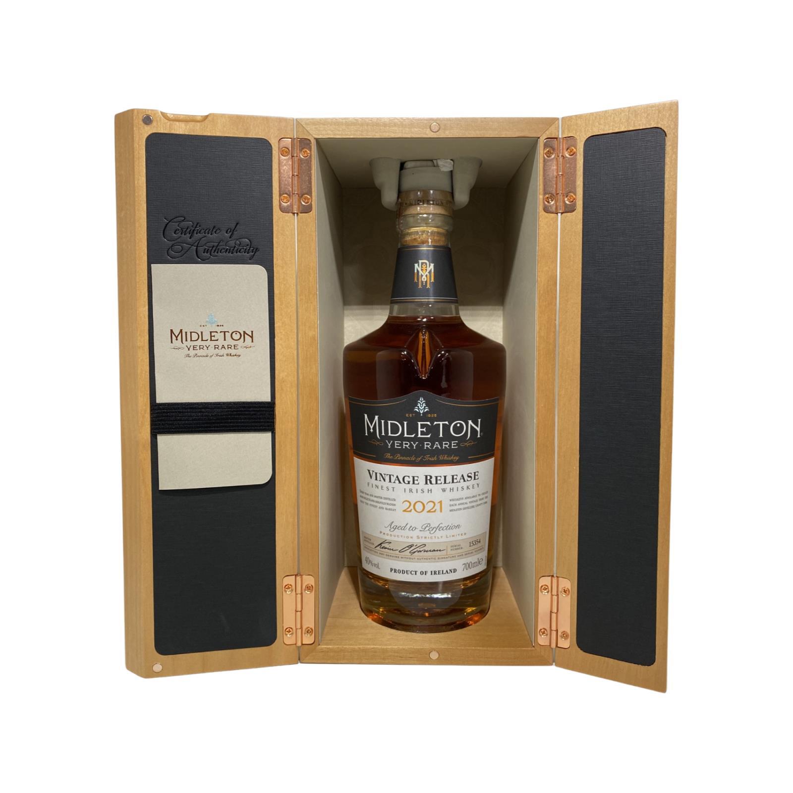 The 2021 edition to Ireland's most premium and beloved whiskey series; Midleton Very Rare. This is the 38th installment and the first release under Kevin O' Gorman appointed Master Distiller of the Midleton Distillery in 2020. Both the bottle and gift box are in very good condition, certificate and distillery invite are also included.