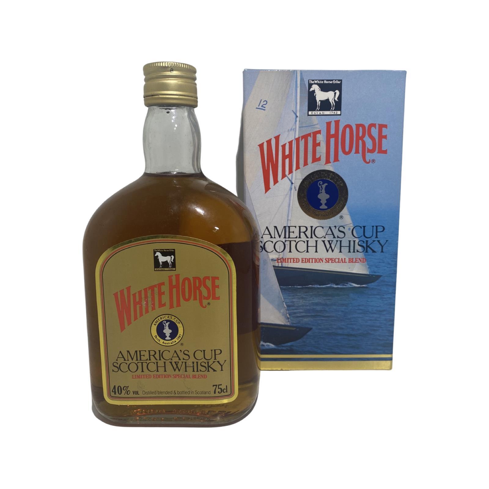 Released to commemorate the America's Cup of 1987. A limited-edition bottling of White Horse blended Scotch whisky.First produced back in 1861 and is known for its use of certain single malts in the blend, namely Lagavulin, Talisker, and Caol Ila. For keen eyed buyers you may have seen the Lagavulin 16 with white horse distillers on the label in the past.