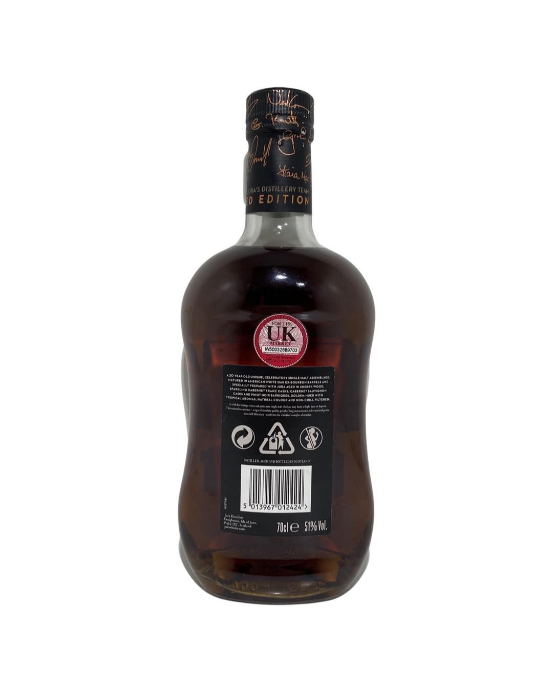 Released in September 2017 an assemblage of casks was chosen by the distillery team at Jura. This is 20 year old malt aged in First fill Ex-Bourbon, Sherry, Sparkling Cabernet Franc, Cabernet sauvignon and Pinot Noir wine casks. A great selection of casks to give a superb mix of flavours.