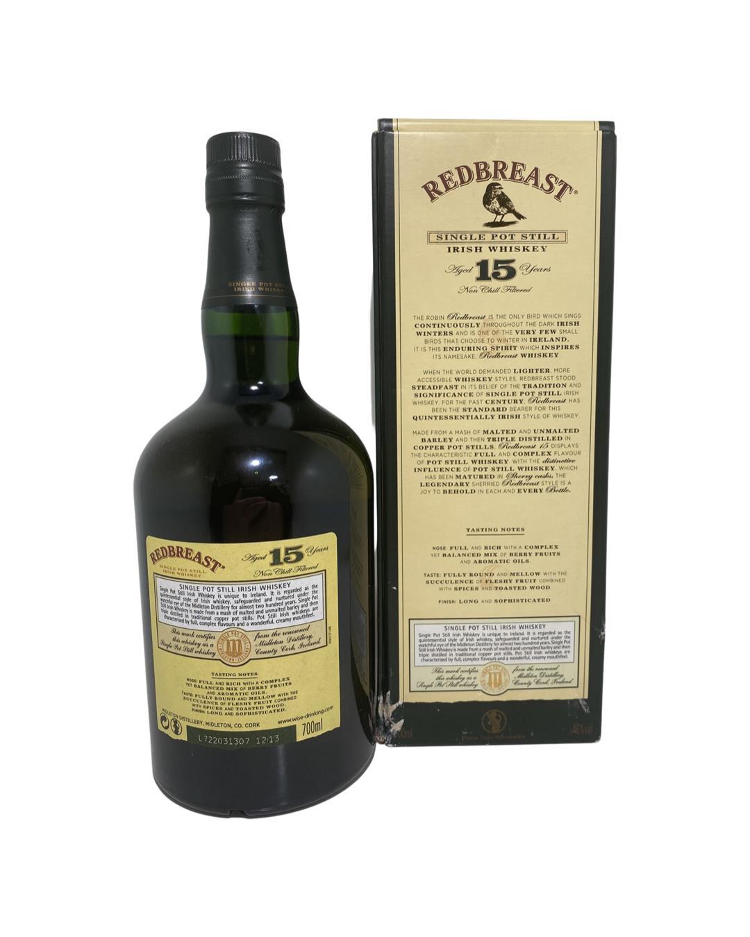 The 15 year old expression of Redbreast was initially a one-off release that was eventually made a permanent part of the range due to its huge popularity. This is one of the richest, and heaviest Irish pot still whiskeys. The bottling is vatted from whiskeys aged between 15 and 19 years old and the cask selection is from 1st fill bourbon and sherry barrels. Redbreast 15 Year Old has won many awards including a Gold Medal at the International Spirits Challenge 2010.