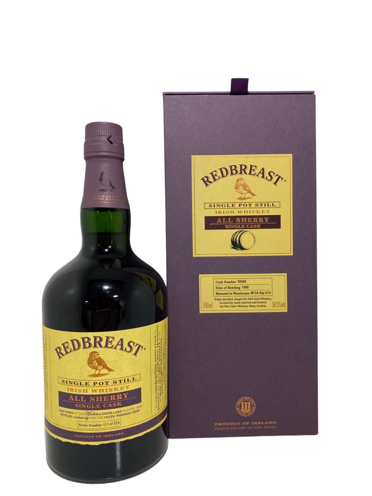 The first ever Redbreast Single Cask to be released in Ireland and it is a Celtic Whiskey Shop Exclusive. What a whiskey this is! Entirely matured in a fresh sherry barrel for over 17 years and bottled at cask strength - 58.5%.