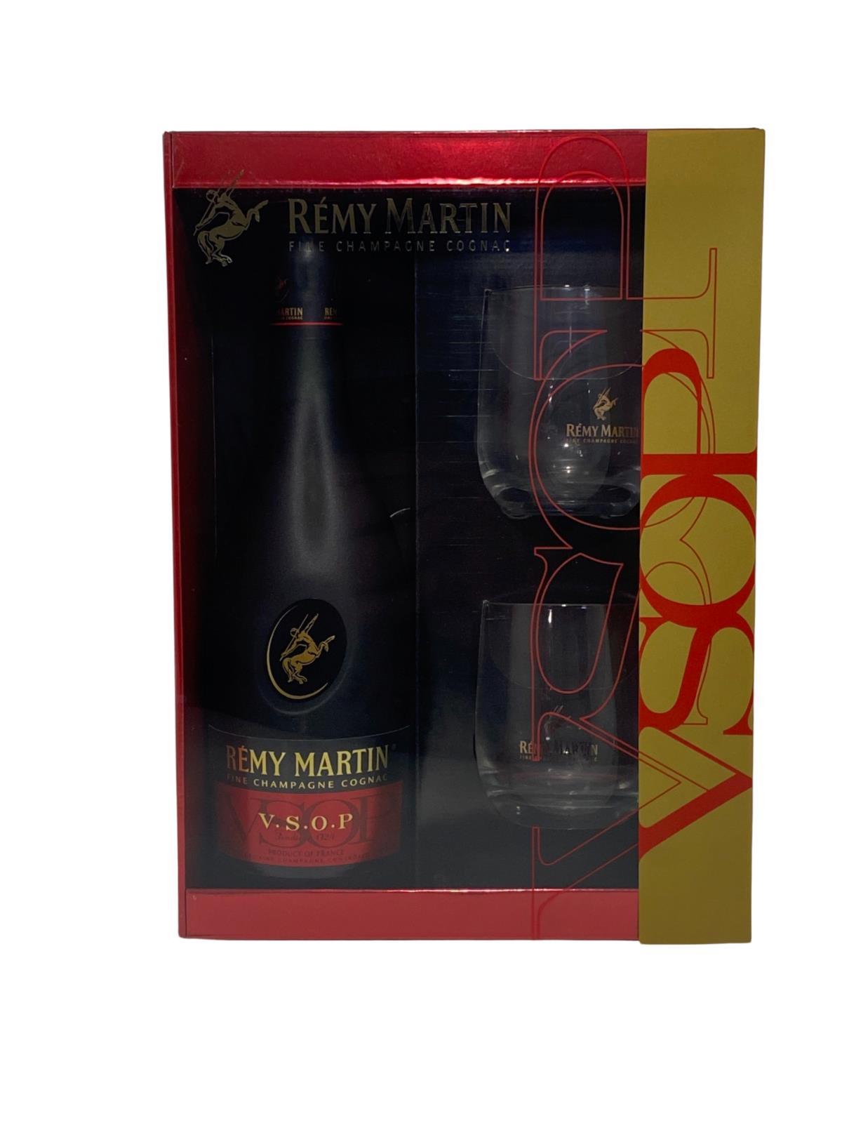 Eaux-de-vie comes from two high quality vineyards for the Remy Martin VSOP; the Grande Champagne and the Petite Champagne. Remy Martin's Cellar Master Andre Renaud is known for creating the first VSOP Fine Champagne in 1927. This comes in a gift pack with 2 glasses.