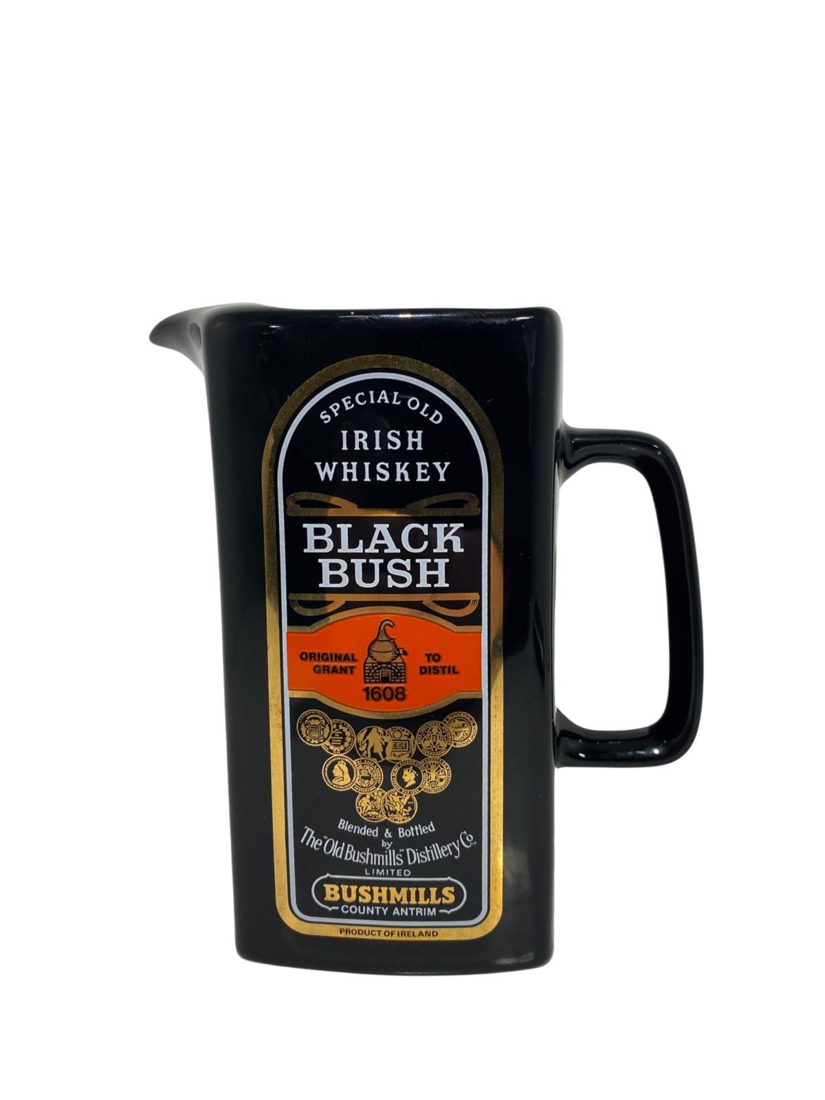 A tall Bushmills black bush branded water jug. Perfect for a home bar.