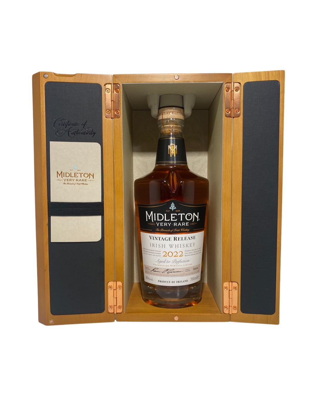 The 2022 edition to Ireland's most premium and beloved whiskey series; Midleton Very Rare. This is the 39th installment and the first release under Kevin O' Gorman appointed Master Distiller of the Midleton Distillery in 2020. Both the bottle and gift box are in very good condition, certificate and distillery invite are also included.