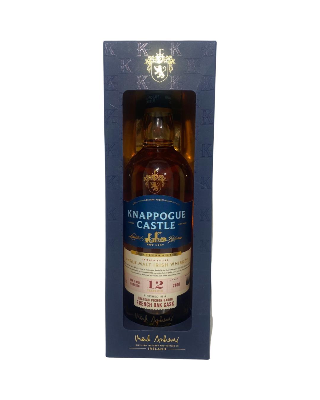 A Limited Edition Bottling from the Cask Finish series of only 2100 Bottles. Finished in a French Oak Cask from the Chateau Pichon Baron Vineyard.with the same Presentation display box as the others in the series.A 12 year old Single malt selected exclusively for Mark Andrews Knappogue castle Brand. This was a travel retail exclusive and certainly a great edition to any Knappogue collection