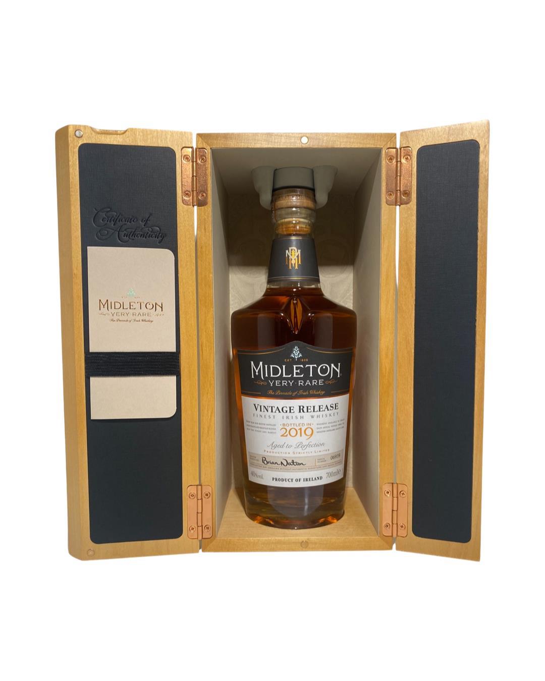 The Midleton Very Rare 2019, is a bottling brought out by the Midleton Distillery in Co. Cork. The ‘Midleton Very Rare’ range was launched in 1984 and a new vintage has been released every year since then. Barry Crockett started off the ‘Midleton Very Rare’ range while he was the Master Distiller of Midleton Distillery, in 2013 Barry Crockett retired from his role of Master Distiller. From 2014 onwards Brian Nation has been creating the ‘Midleton Very Rare’ range, maintaining its role as standard-bearer and pinnacle of Irish Whiskey. The bottle and gift box in great condition also include the cert and distillery invite.