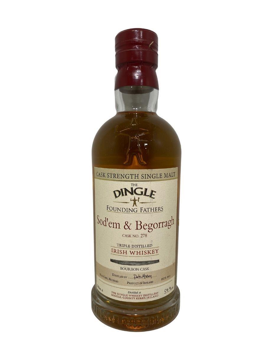 A rare bottling of Dingle Cask Strength, from cask no. 278, marked as Sode'em & Begorragh. This Single Cask is part of the The Founding Fathers Series which was created for those who initially invested in the distillery. Due to their unique nature, bottles from this series are considered an interesting addition to any Dingle collection. This cask strength single malt was exclusively aged in a Bourbon Cask and bottled at 59.9% abv. There are 259 bottles from cask #278 and will be sold EXCLUSIVELY through Celtic Whiskey.