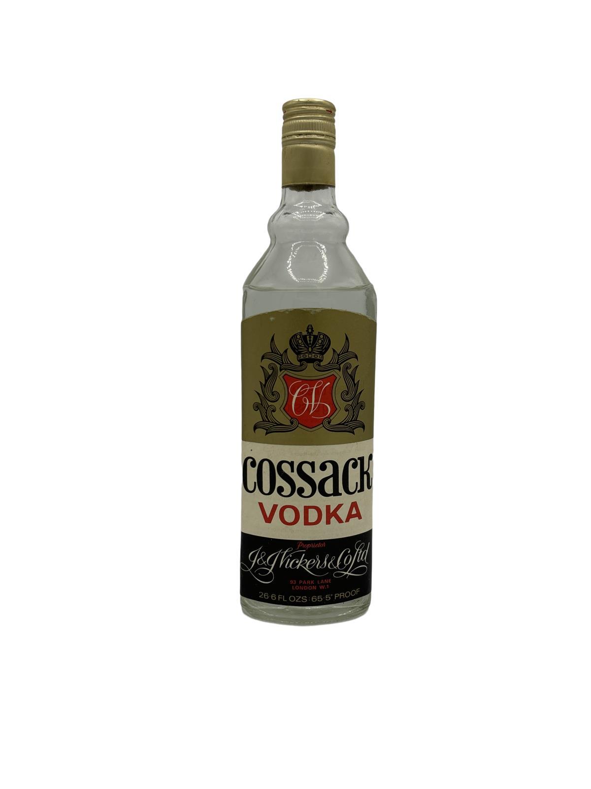 A bottle of Cossack vodka, produced in England by J & J Vickers & Co Ltd., 93 Park Lane, London W1. We estimate this was bottled in the 1980s.