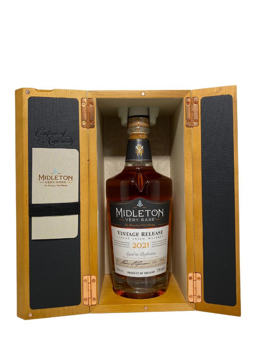 The 2021 edition to Ireland's most premium and beloved whiskey series; Midleton Very Rare. This is the 38th installment and the first release under Kevin O' Gorman appointed Master Distiller of the Midleton Distillery in 2020. Both the bottle and gift box are in very good condition, certificate and distillery invite are also included.Bottle number 17718